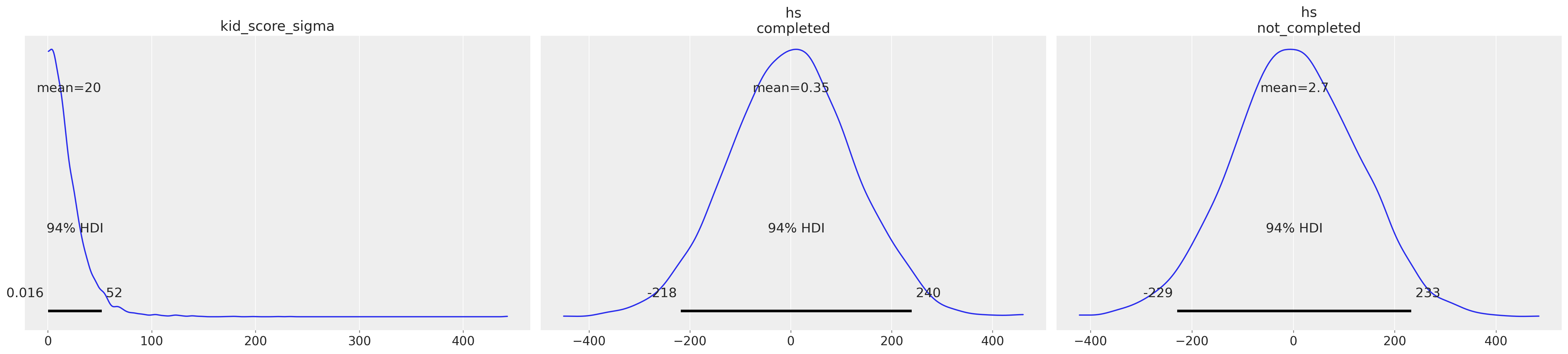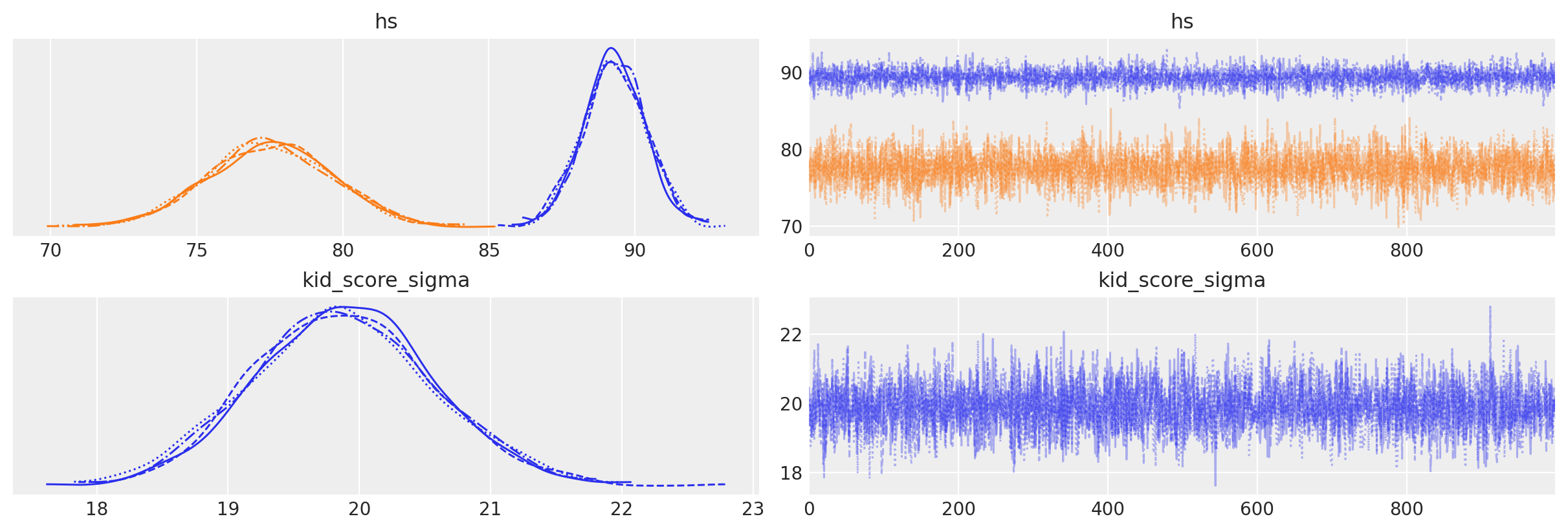mod_2 = bmb.Model("kid_score ~ 0 + hs", kidiq)