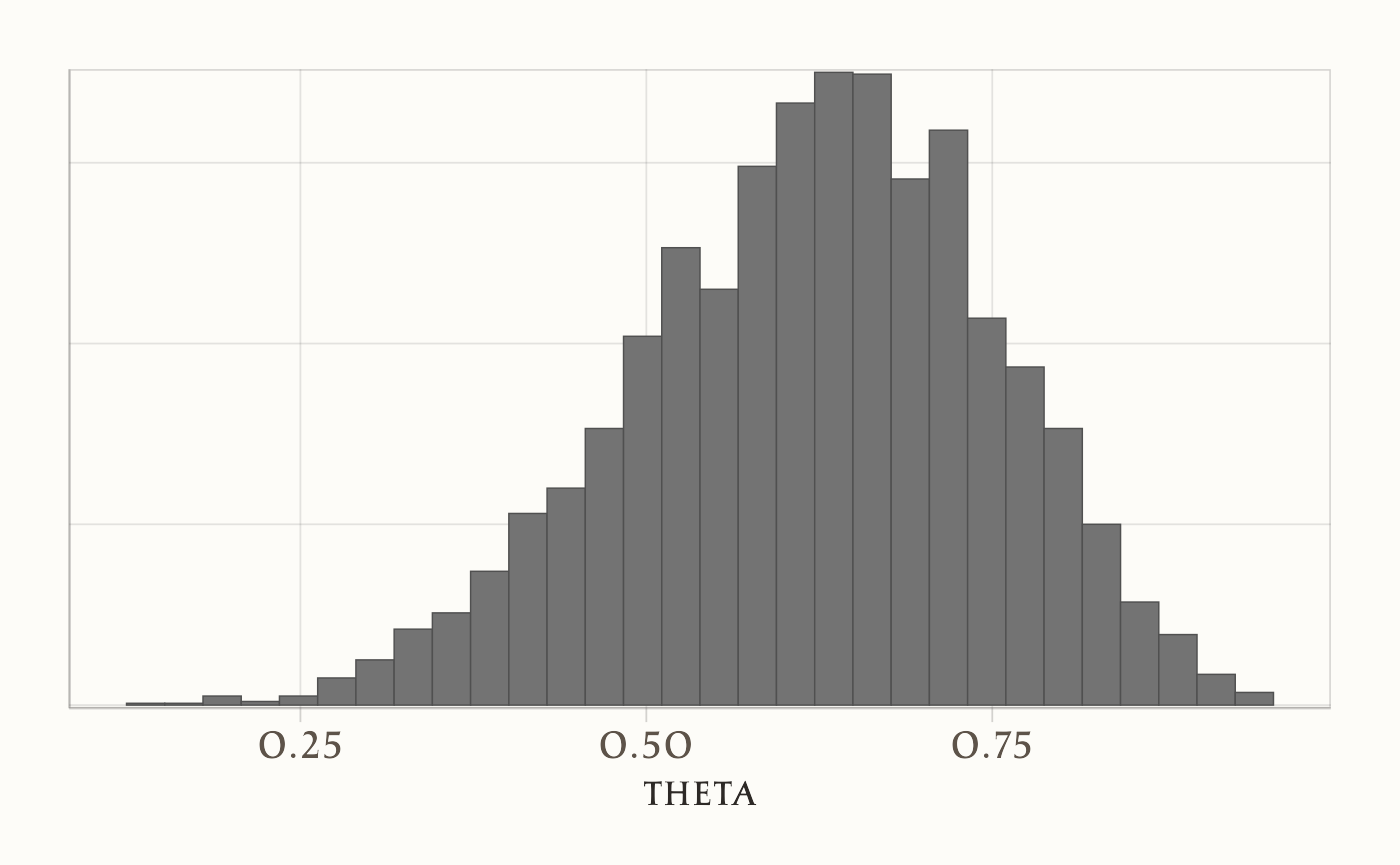 semplifica la creazione di grafici. Ad esempio, un istogramma della distribuzione posteriore di \(\theta\):
