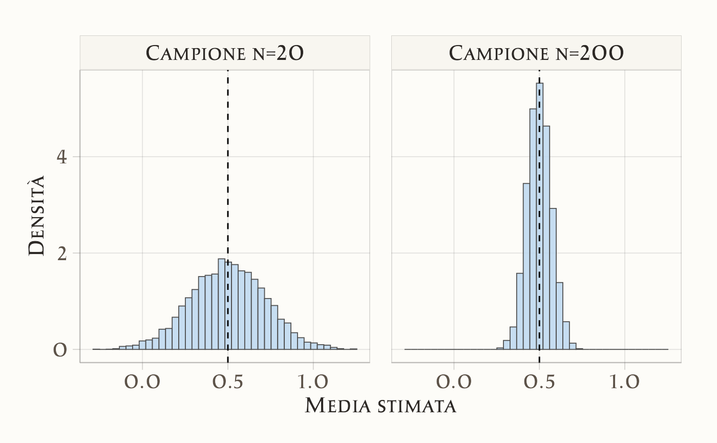 Quando chiediamo a un campione di studenti universitari di valutare il proprio livello di ansia su una scala da 1 a 5, non otteniamo una misura perfetta e definitiva del “vero” livello di ansia. Otteniamo invece una stima influenzata da molte fonti di variabilità: la situazione contingente (per esempio, se quel giorno c’era un esame imminente), le caratteristiche individuali, e l’inevitabile errore di misura.
