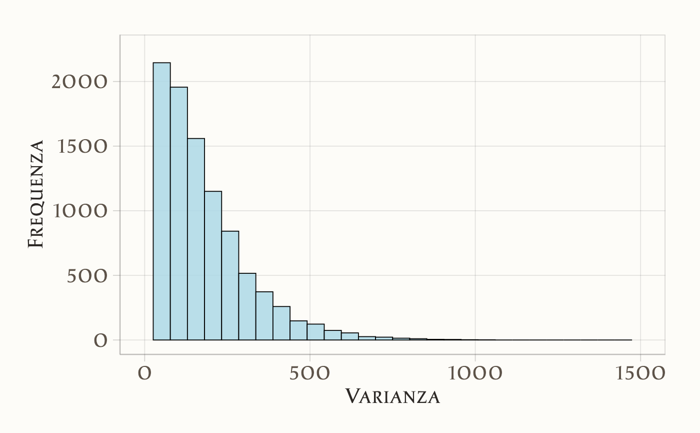 La varianza è una delle misure di dispersione più utilizzate in statistica perché tiene conto di tutte le osservazioni e descrive quanto i valori si discostano dalla loro media. Formalmente, se abbiamo \(n\) osservazioni \(x_1, x_2, \dots, x_n\) e indichiamo con \(\bar{x} = \frac{1}{n} \sum_{i=1}^n x_i\) la loro media, la varianza (in versione descrittiva) si calcola così:
