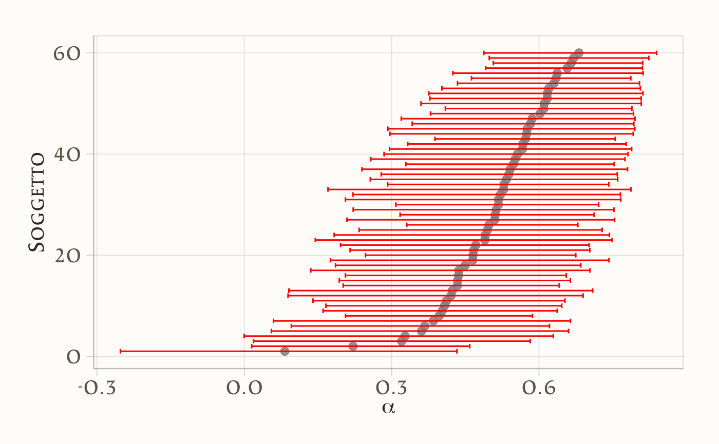 - il parametro \(\sigma\), che cattura la variabilità residua (rumore decisionale), rimane comune a tutti i soggetti.