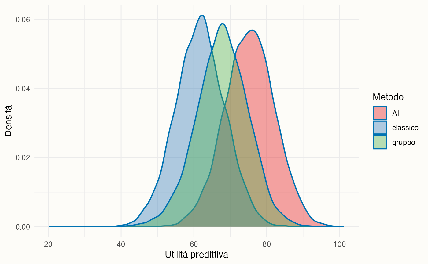 Il grafico presenta la distribuzione dell’utilità predittiva associata a ciascun metodo di studio, calcolata mediante la relazione: