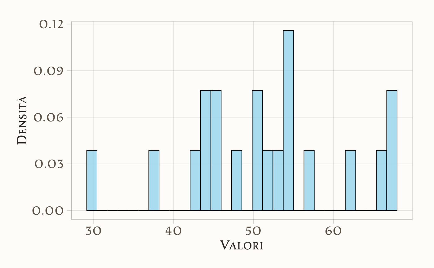 Il primo campione di ampiezza \(n = 30\) che abbiamo ottenuto è il seguente: