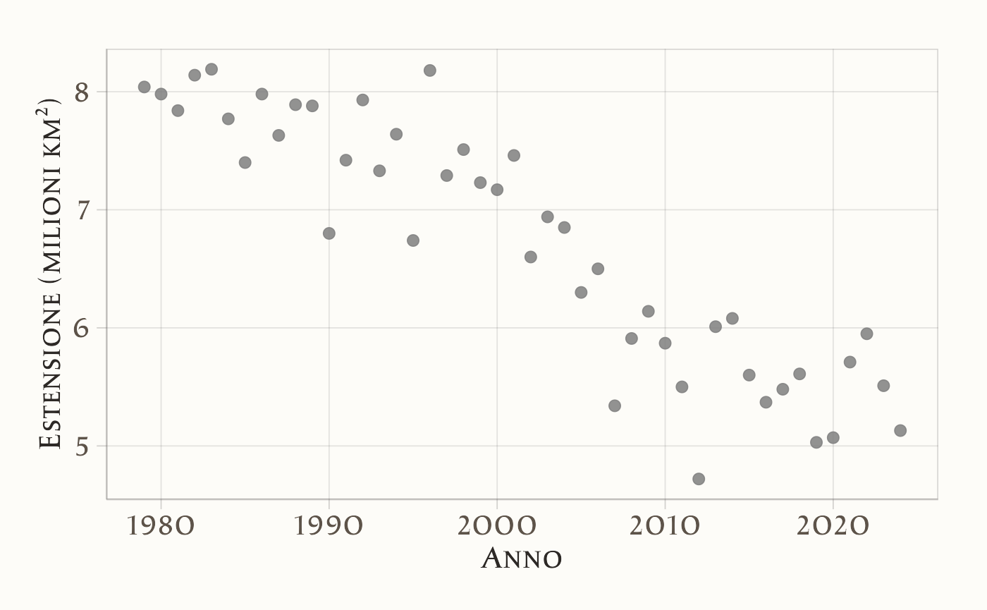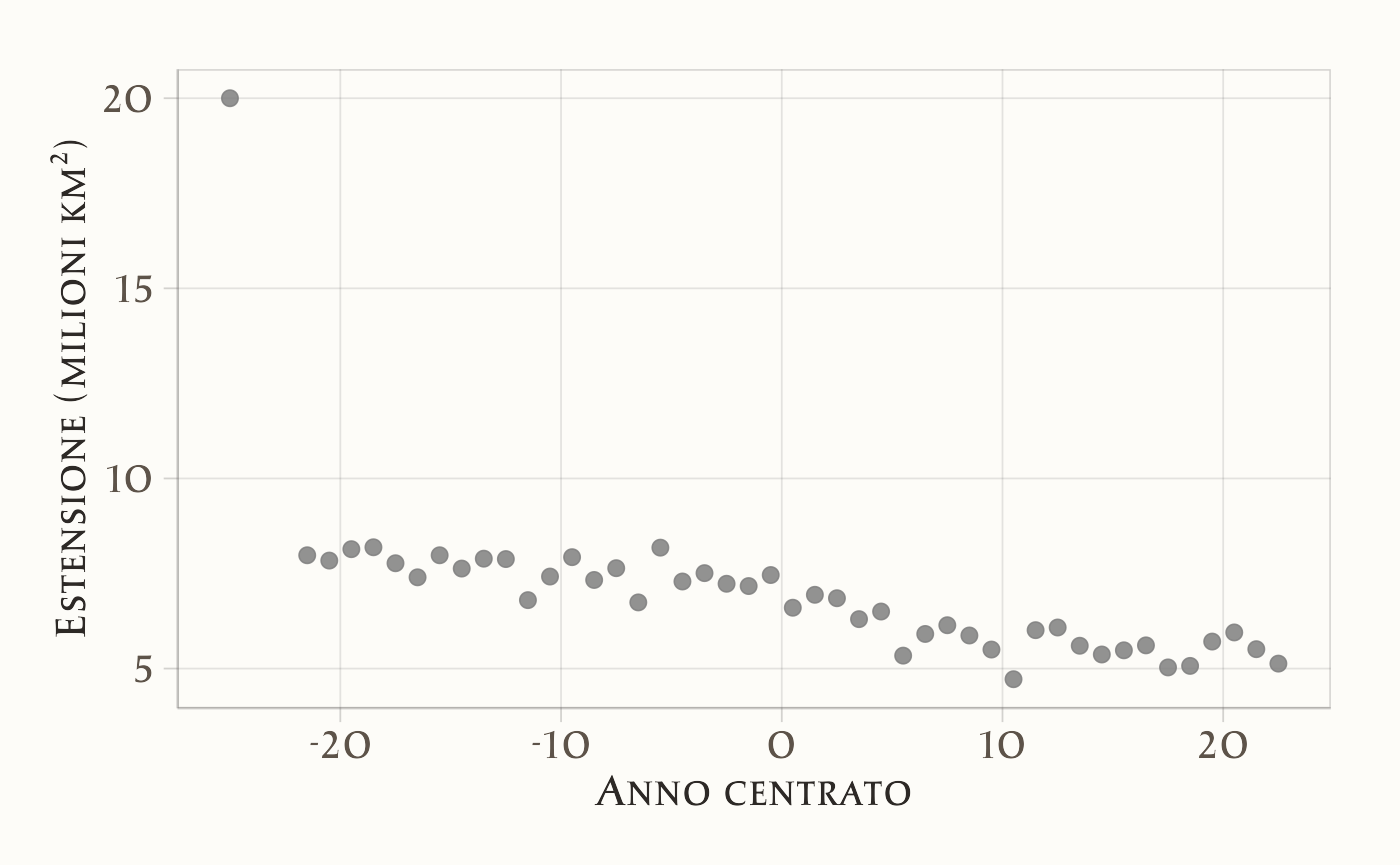 labs(x = "Anno", y = "Estensione (milioni km²)")