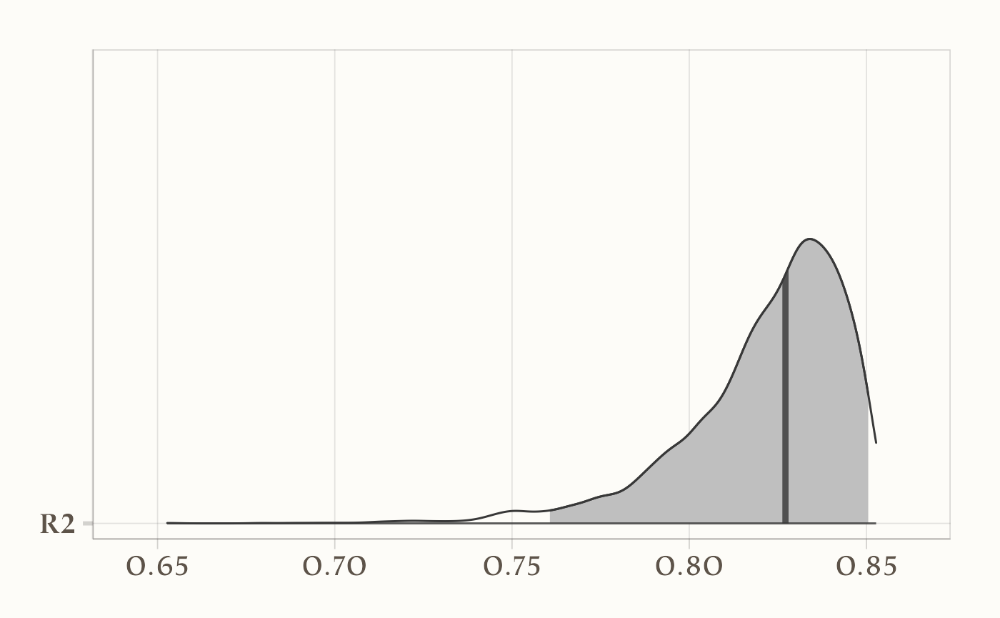Il Bayes \(R^2\) è uno strumento potente perché combina l’intuitività del \(R^2\) classico con la ricchezza informativa dell’approccio bayesiano, permettendo di valutare non solo quanta varianza il modello spiega, ma anche quanto siamo sicuri di questa stima.