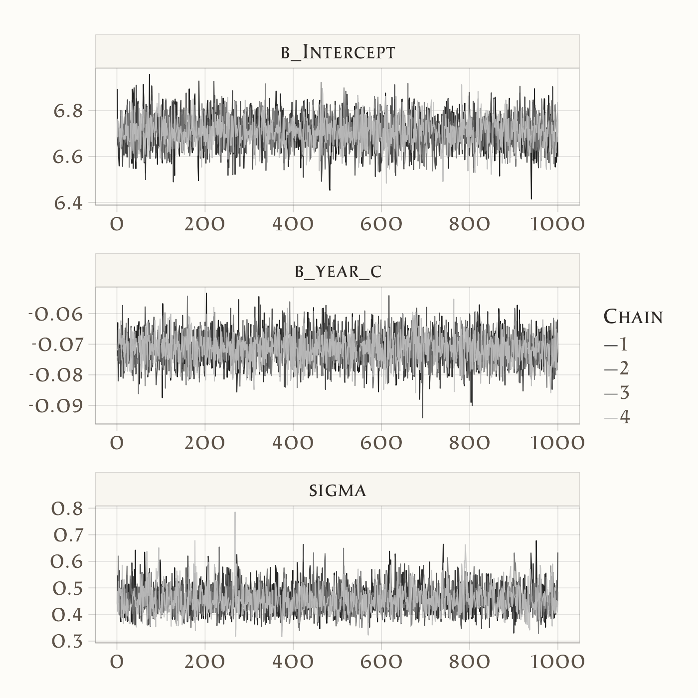 #> [1] "b_Intercept" "b_year_c" "sigma" "lprior" "lp__"