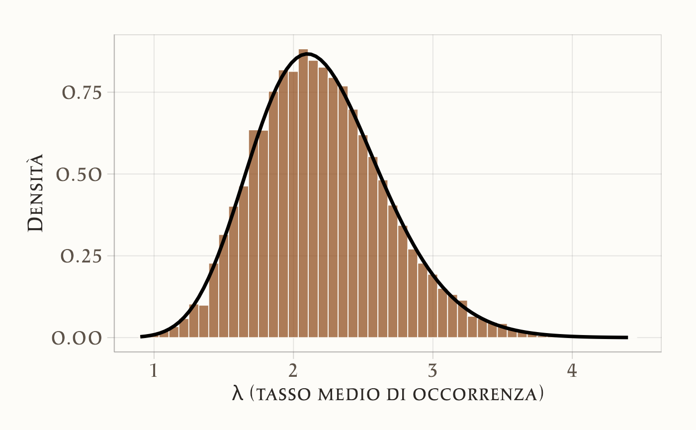 - Quantificare l’incertezza: non ci basta stimare \(\lambda\), vogliamo anche dire quanto siamo sicuri (o incerti) di quella stima.