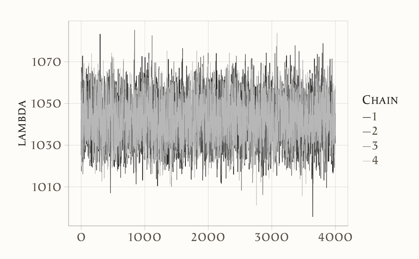 cat("Posterior mean λ:", round(post_mean, 2), "\n")