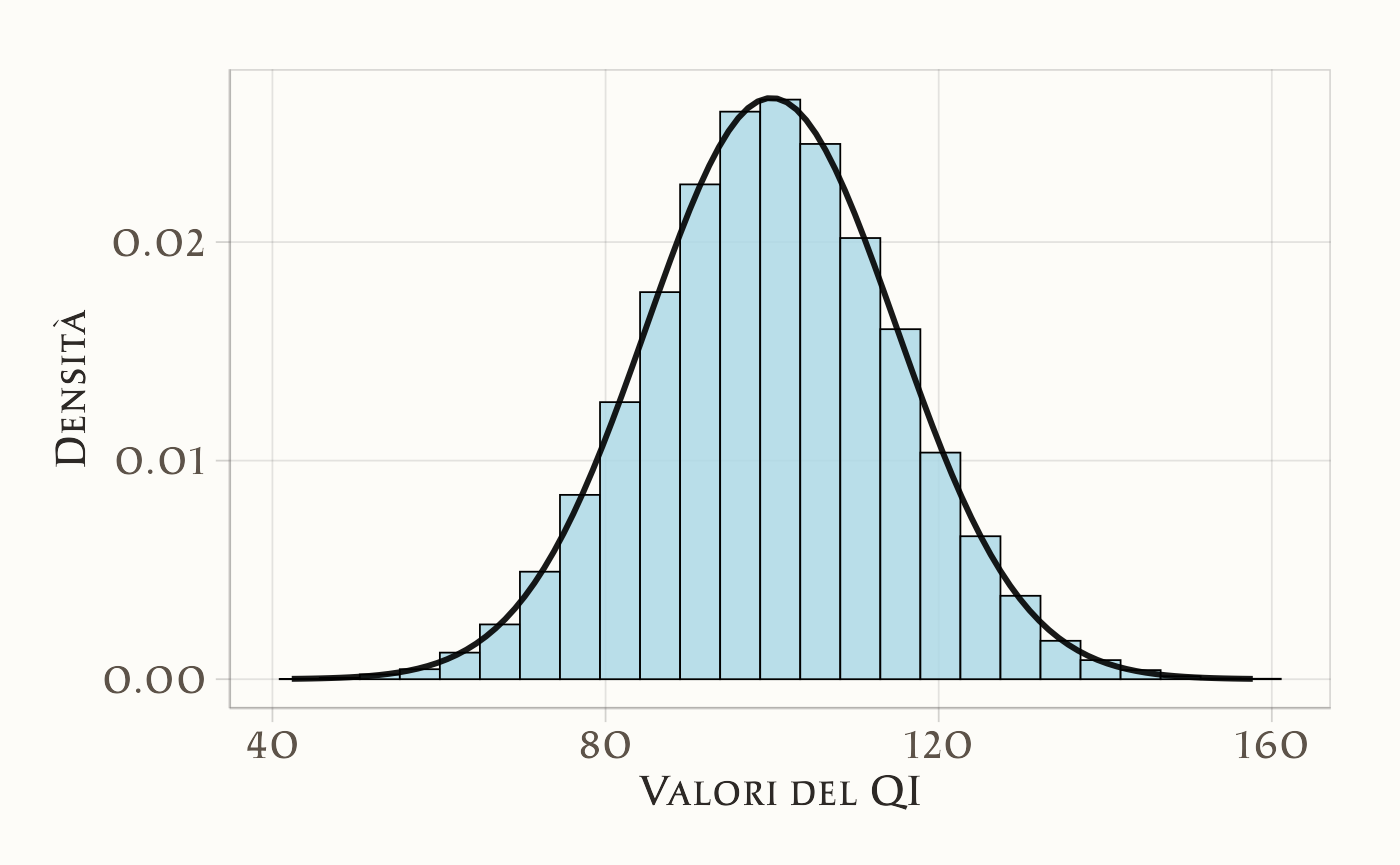 - Variabili casuali continue: possono assumere un numero infinito di valori all’interno di un intervallo. Esempi includono il tempo di attesa per un evento o il quoziente intellettivo (QI) di una persona.