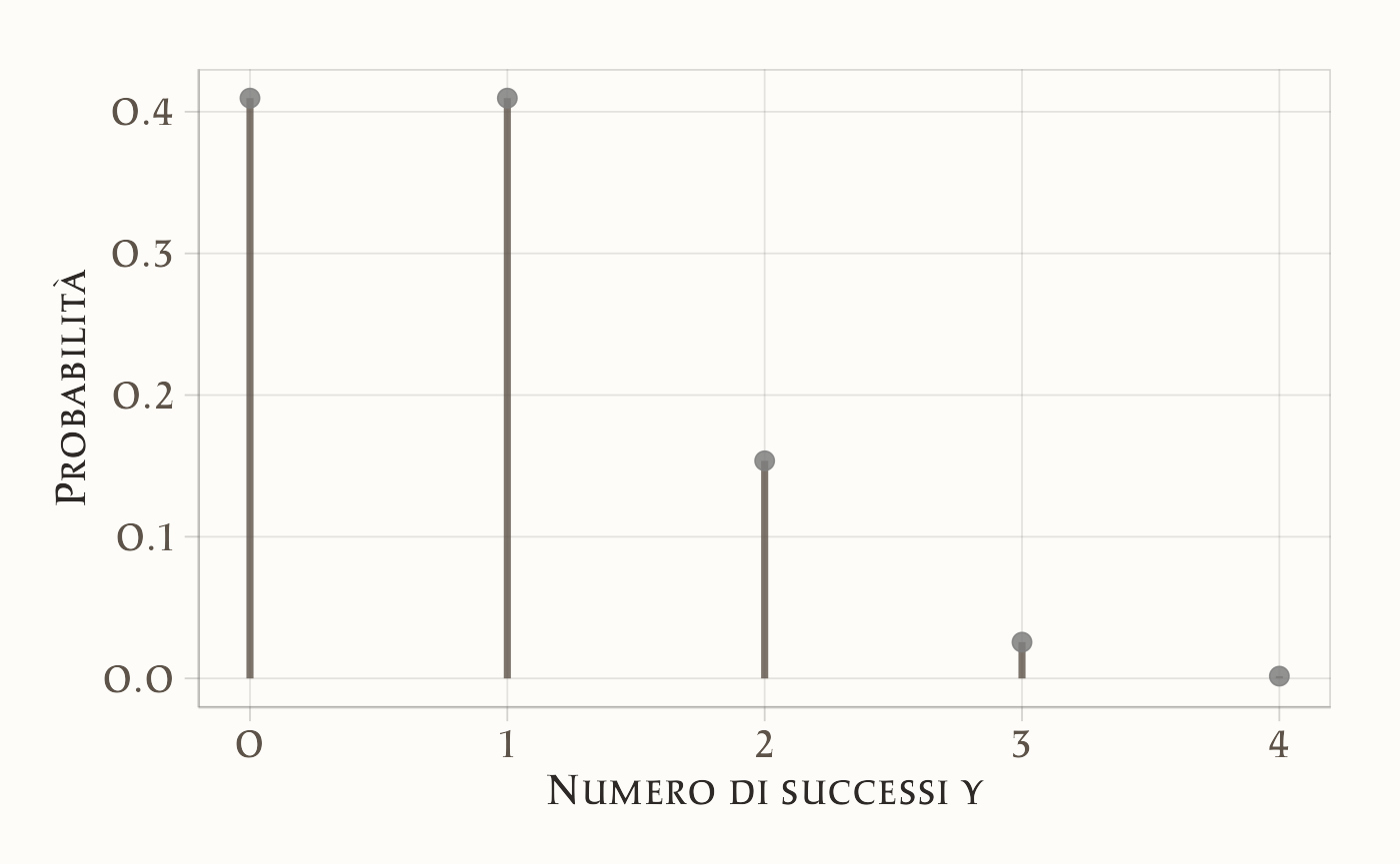 Queste distribuzioni rappresentano il fondamento dell’analisi statistica discreta e trovano applicazione in numerosi ambiti. In particolare, nel contesto dell’inferenza bayesiana, la comprensione della distribuzione Binomiale e della sua estensione Beta-Binomiale è essenziale. Queste distribuzioni, infatti, forniscono gli strumenti necessari per l’aggiornamento bayesiano, un processo chiave che permette di rivedere le nostre credenze iniziali alla luce di nuovi dati. Questo concetto sarà ulteriormente esplorato nei capitoli successivi, dove approfondiremo come le distribuzioni a priori e a posteriori interagiscono nel quadro bayesiano.