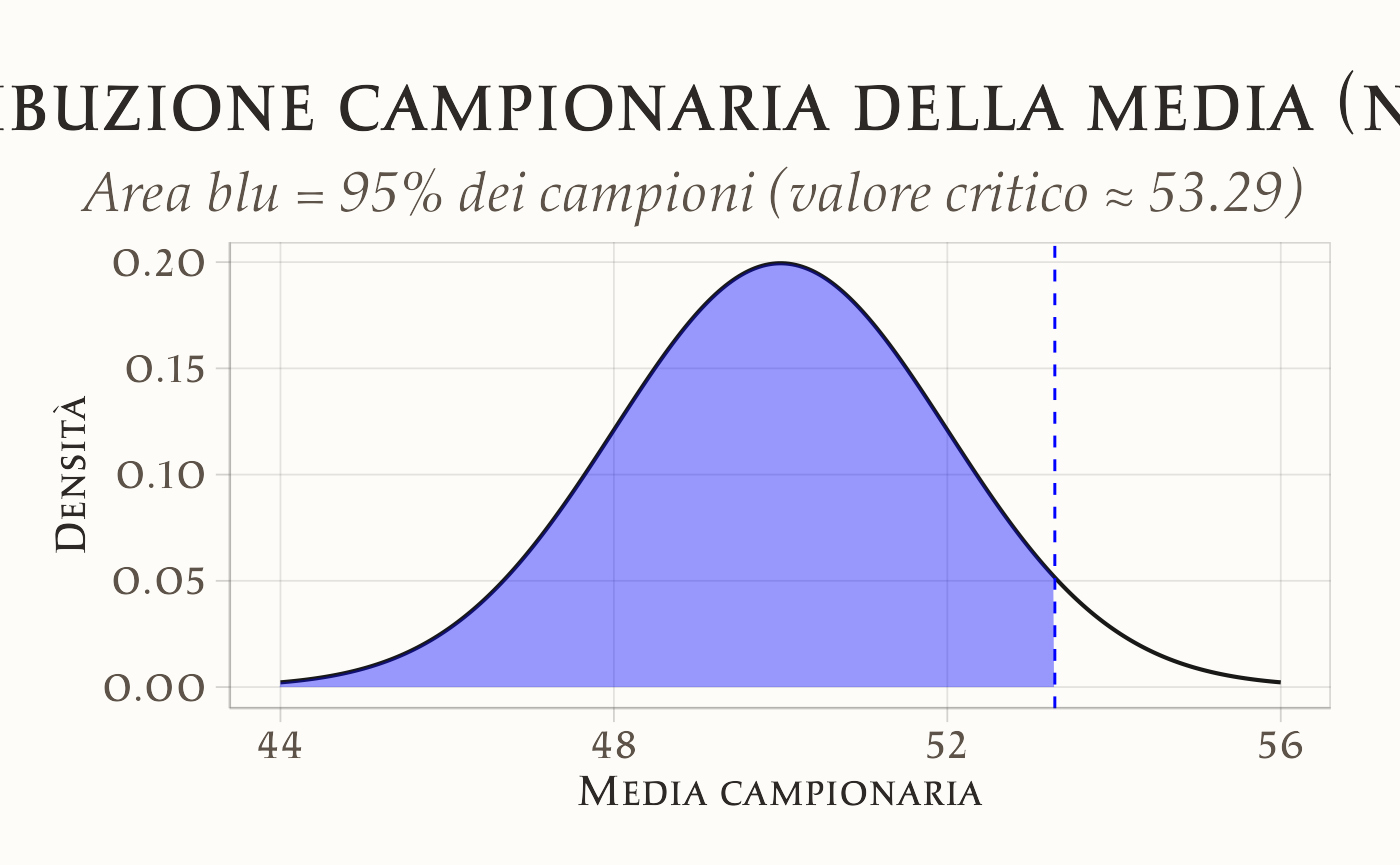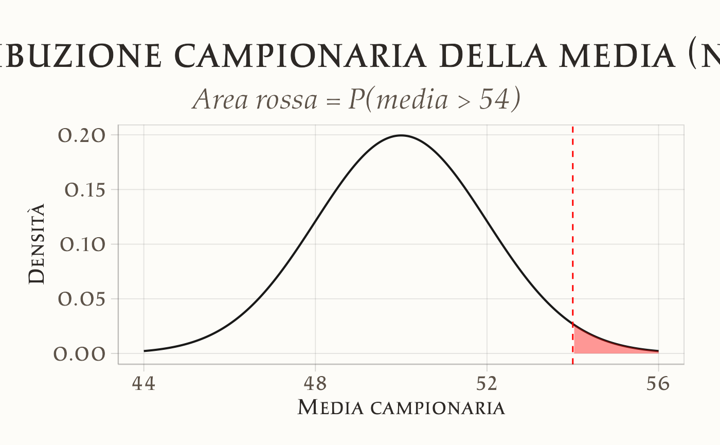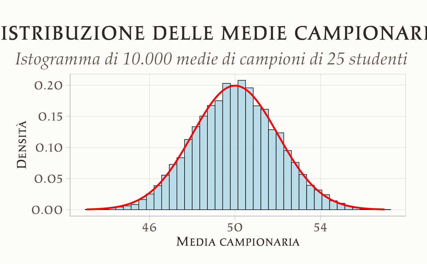 L’istogramma mostra un andamento irregolare, riflettendo la variabilità intrinseca dei piccoli campioni. Questa disomogeneità è attesa e diminuisce all’aumentare della dimensione campionaria.