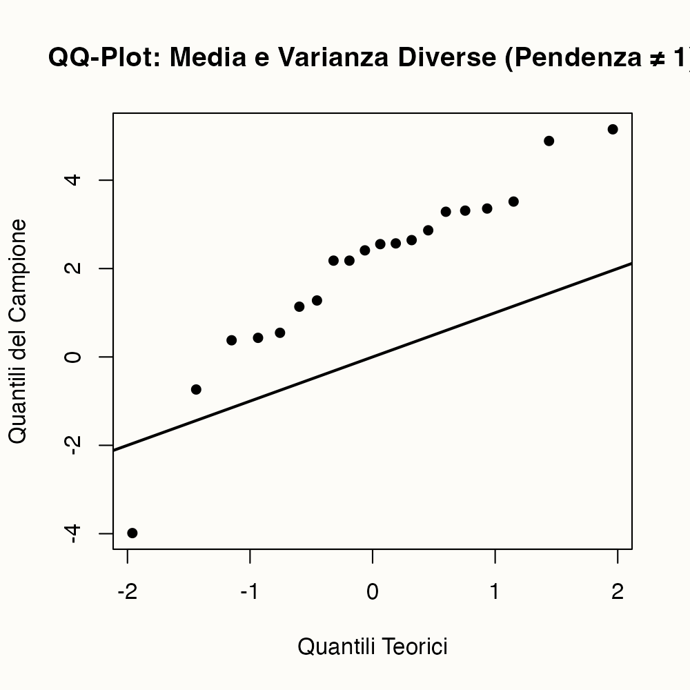 - Pendenza diversa da 1: indica una differenza nella varianza tra il campione e la distribuzione teorica.