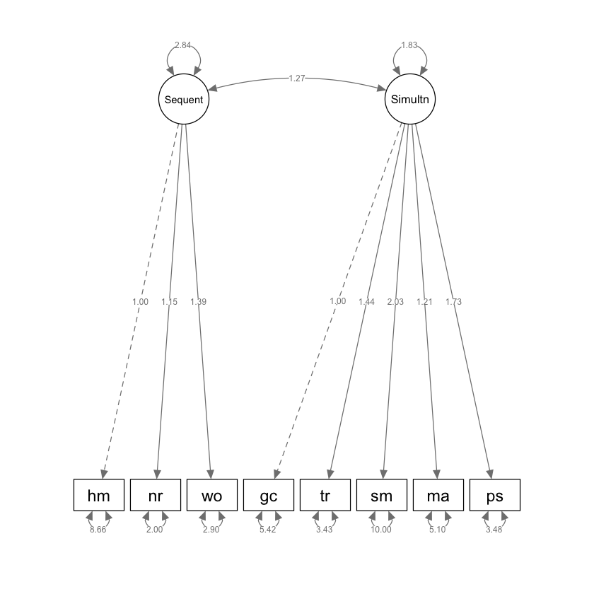 Implicazioni: La standardizzazione dei fattori implica che le loro varianze non sono stimate come parametri liberi. Invece, le covarianze tra i fattori sono liberamente stimate e interpretate come correlazioni di Pearson.