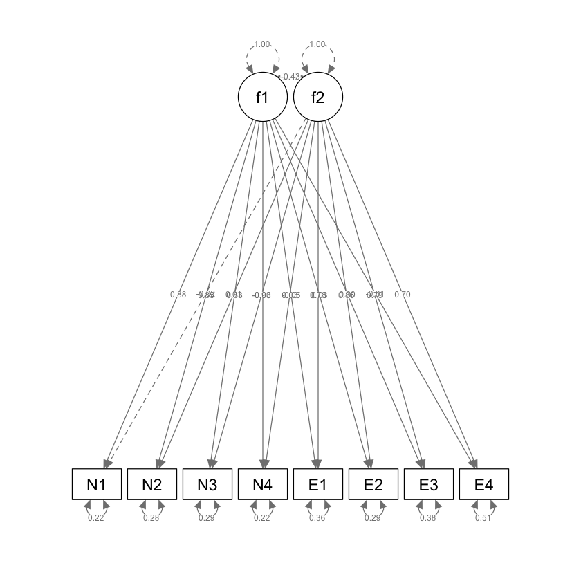 efa("efa")*f2 =~ N1 + N2 + N3 + N4 + E1 + E2 + E3 + E4