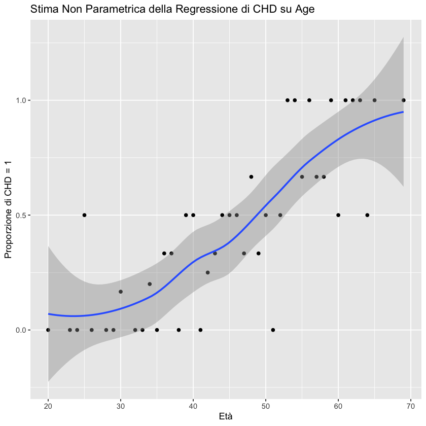 title = "Stima Non Parametrica della Regressione di CHD su Age",
