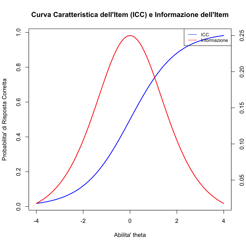 Dipendenza dal Modello di ICC: La definizione matematica dell’informazione di un item dipende dal modello di curva caratteristica dell’item impiegato. Ogni modello fornisce una formula specifica per calcolare l’informazione fornita da un item.