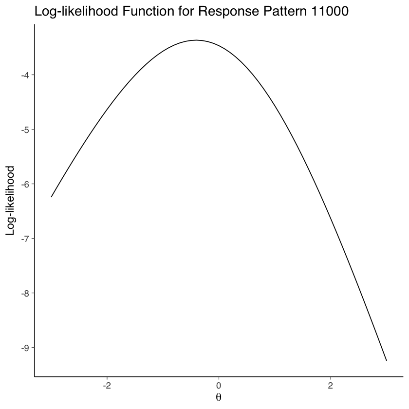 title = "Log-likelihood Function for Response Pattern 11000"