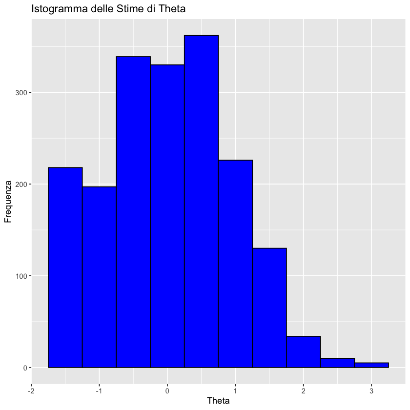 labs(title = "Istogramma delle Stime di Theta", x = "Theta", y = "Frequenza")