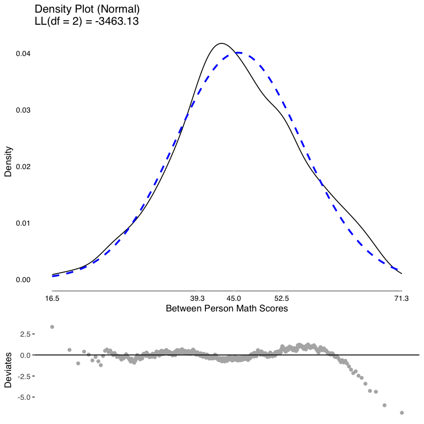 Una descrizione visiva della varianza delle varie componenti del modello può essere ottenuta mediante la funzione modelDiagnostics del pacchetto JWileymisc.