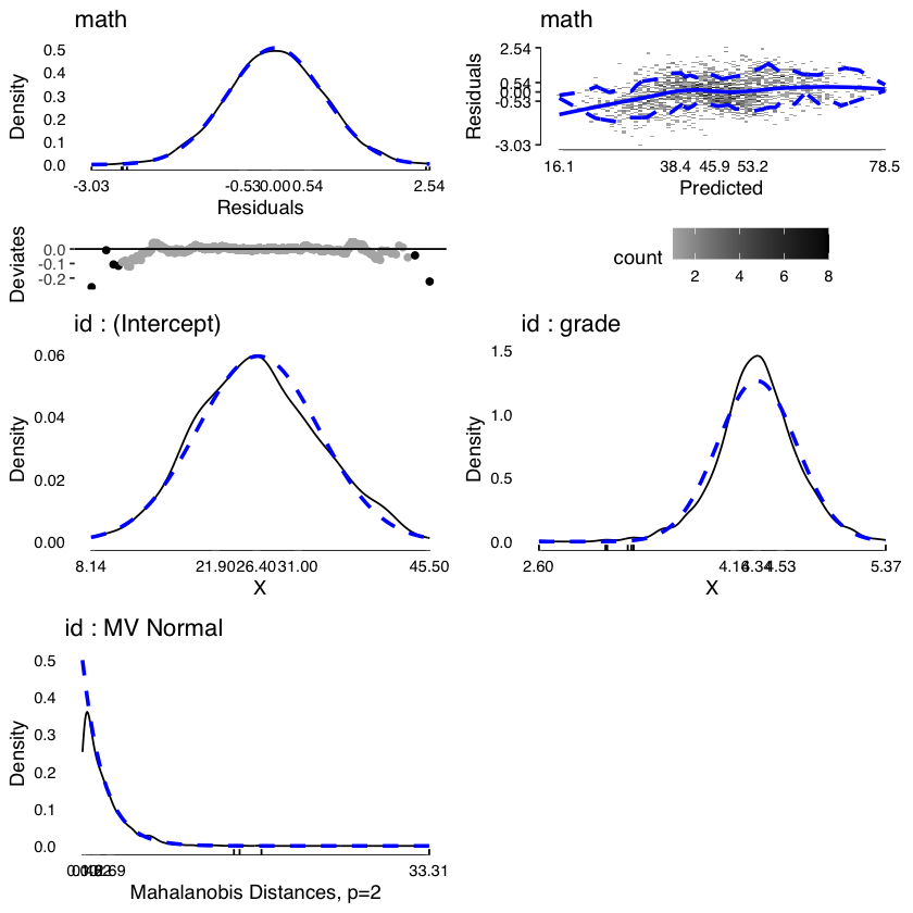Formula: math ~ grade + (1 + grade | id)