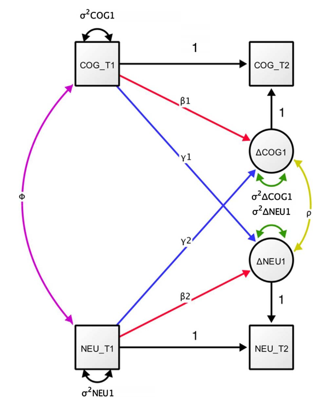 dCOG1~~dNEU1 # This estimates the dCOG and dNEU covariance