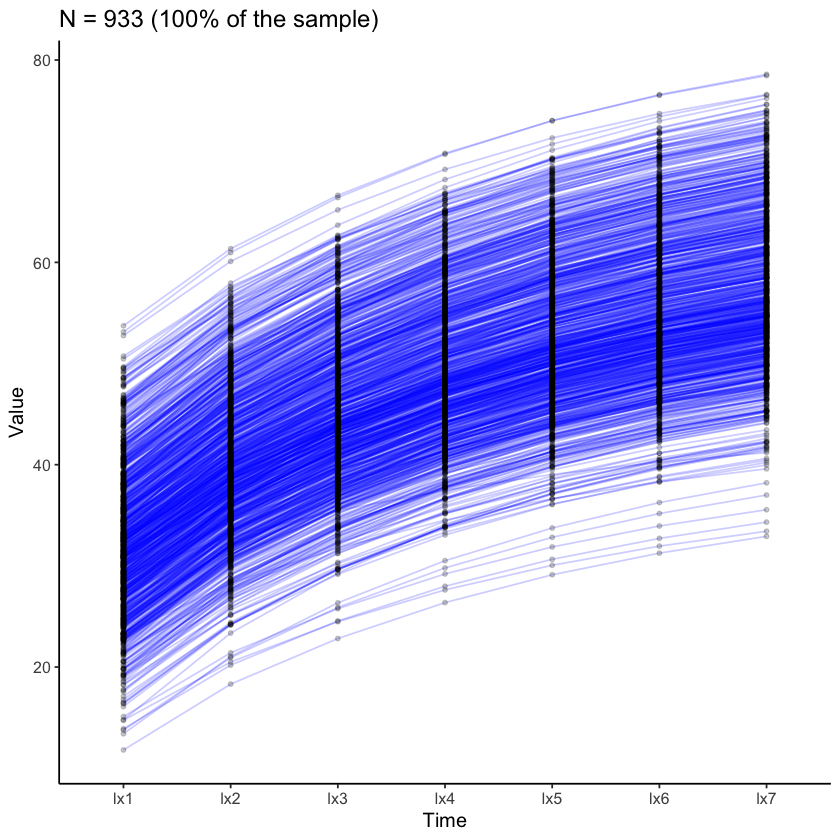 Le traiettorie di sviluppo individuale previste dal modello duale si possono ora visualizzare usando plot_trajectories.