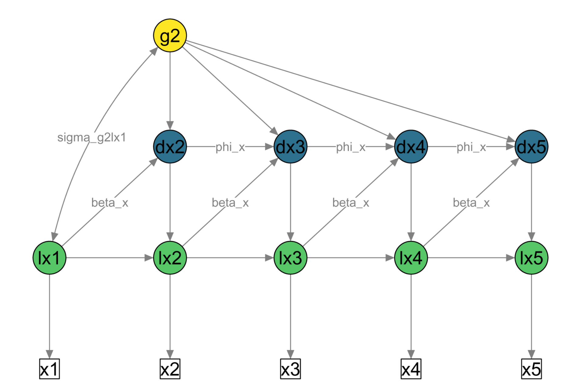 dCOG1 ~ -0.1*COG_T1 # This fixes the self-feedback parameter to -0.1.