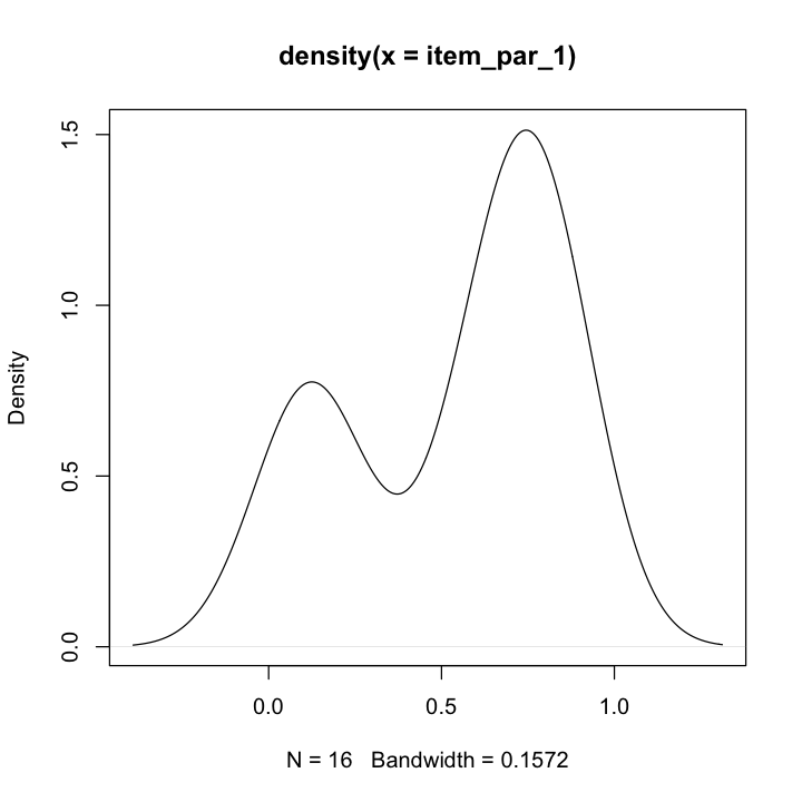 Nell’esempio seguente, calcoliamo l’indice di discriminazione dell’elemento reason.4 nel set di dati SAPA utilizzando la funzione idi del pacchetto hemp. Per specificare i gruppi di alto e basso rendimento, utilizziamo il valore perc_cut = .25 nella funzione idi.