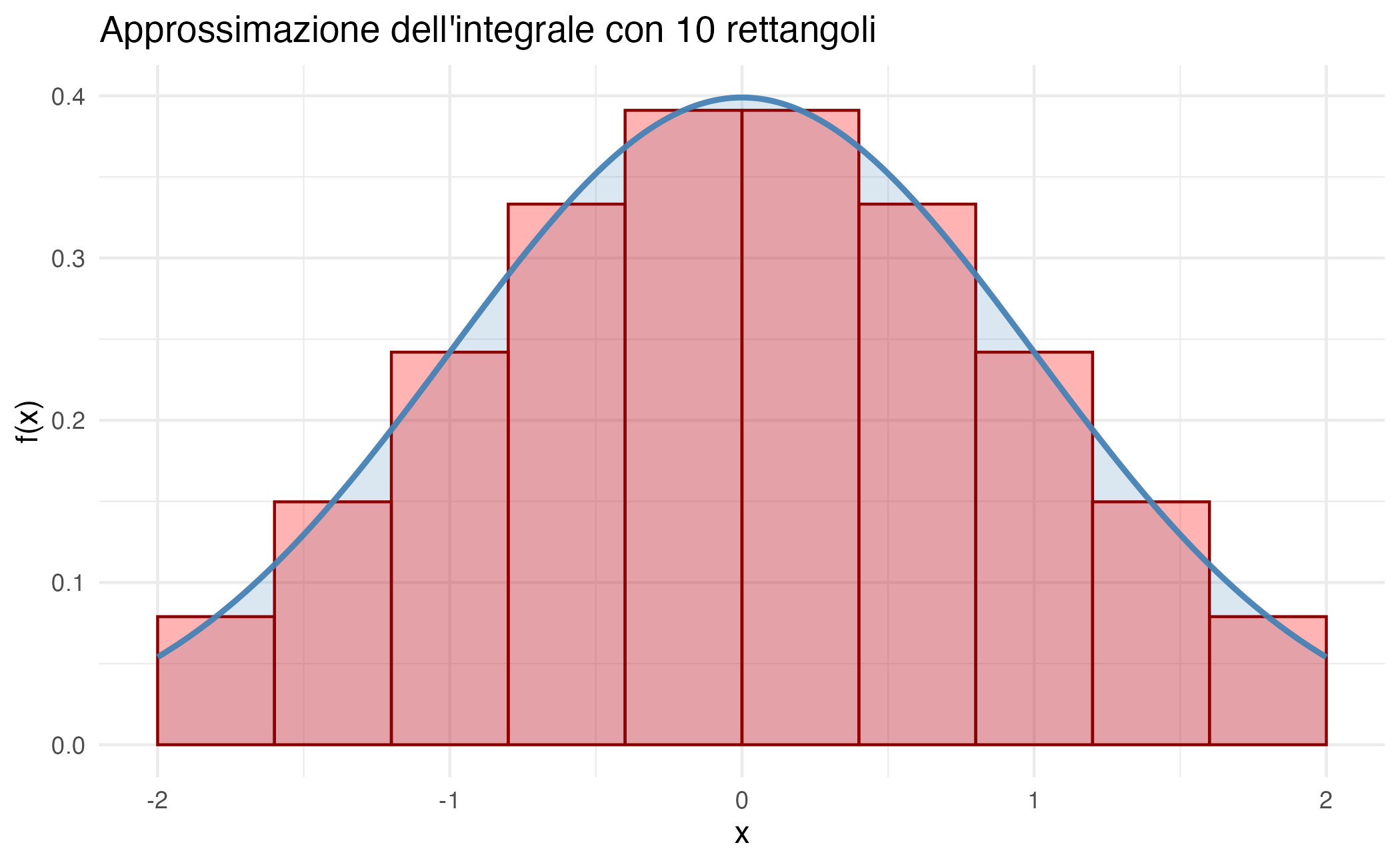 theme_minimal()I.1.3 Approssimazione dell’integrale mediante somma di rettangoli