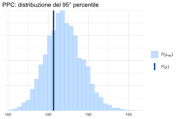 Se il modello è adeguato, la densità dei dati osservati dovrebbe essere sostanzialmente sovrapponibile al “nube” delle densità delle repliche. Un dato osservato che cade sistematicamente fuori dall’insieme delle repliche suggerisce una discrepanza tra modello e realtà.