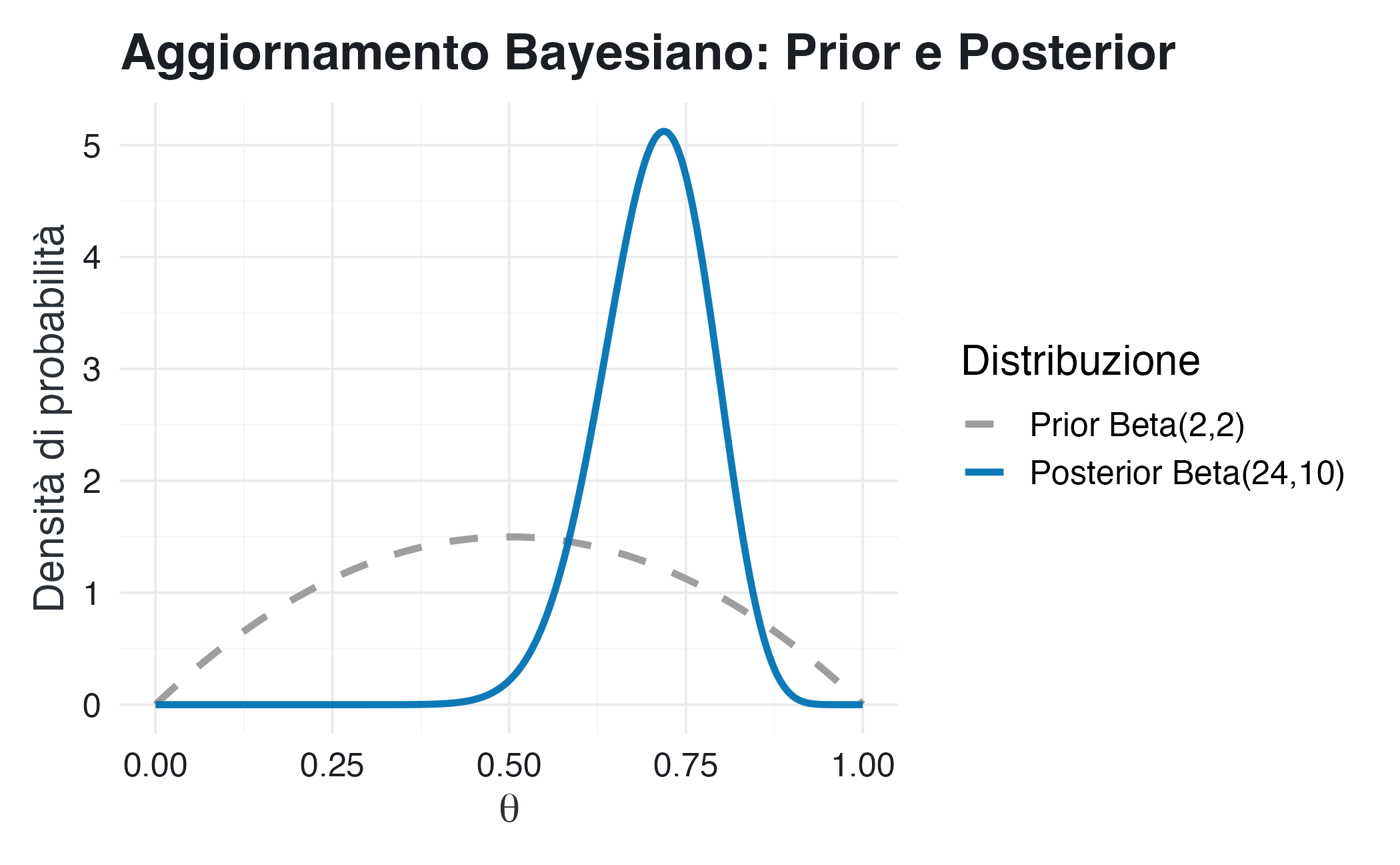 10.2.4 L’aggiornamento bayesiano: combinazione di prior e verosimiglianza