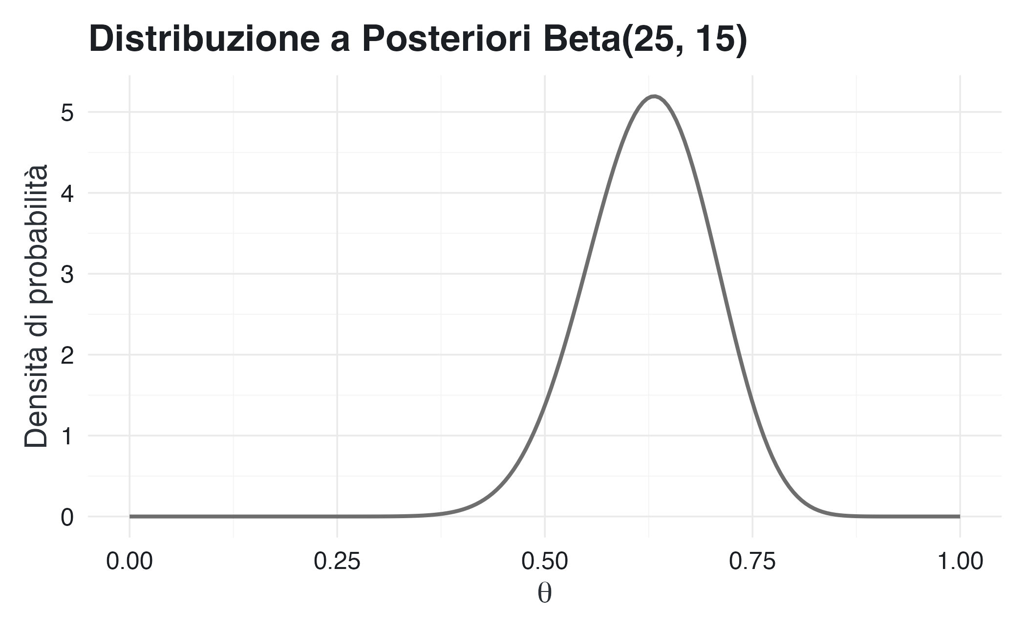 title = "Distribuzione a Posteriori Beta(25, 15)",
