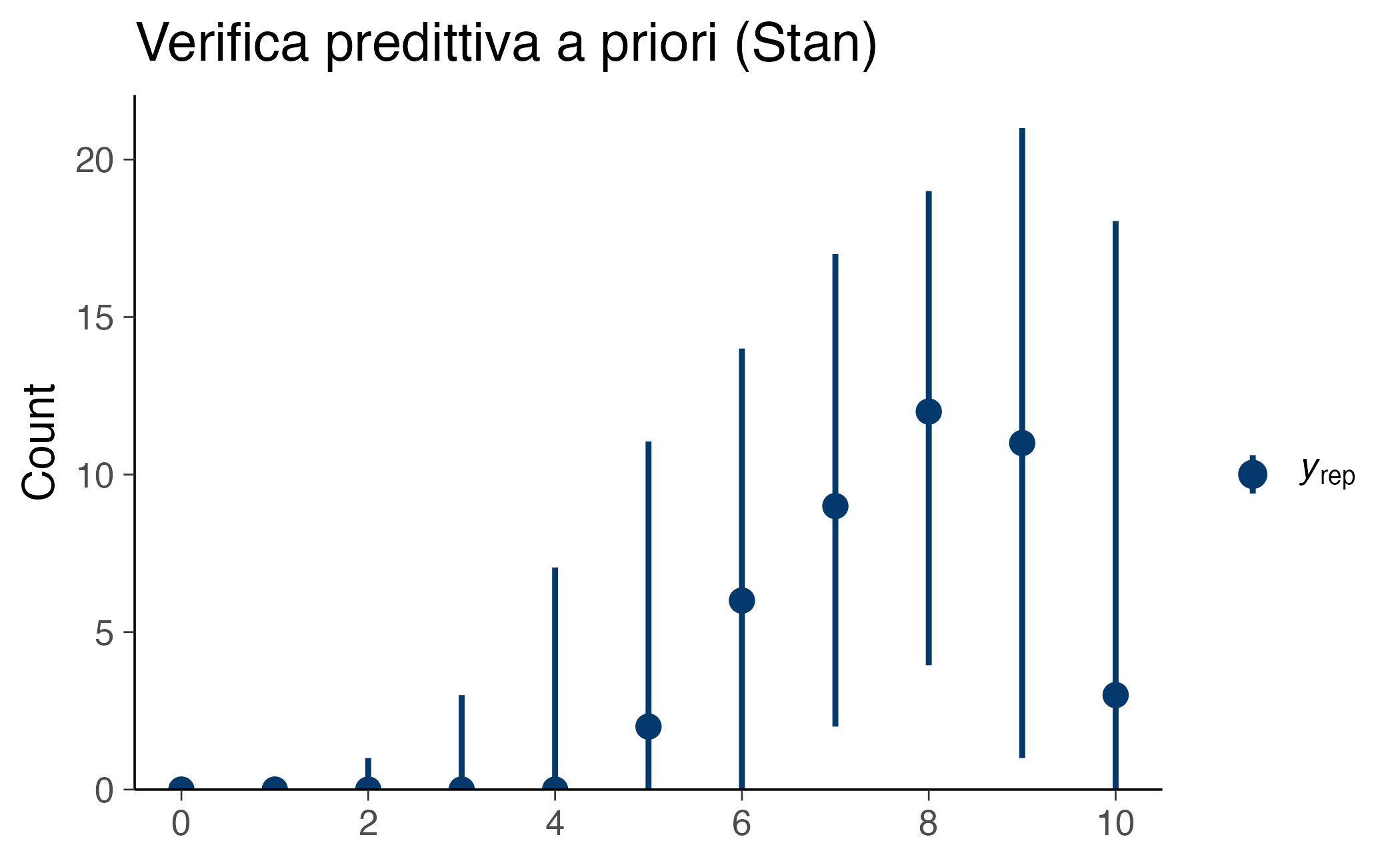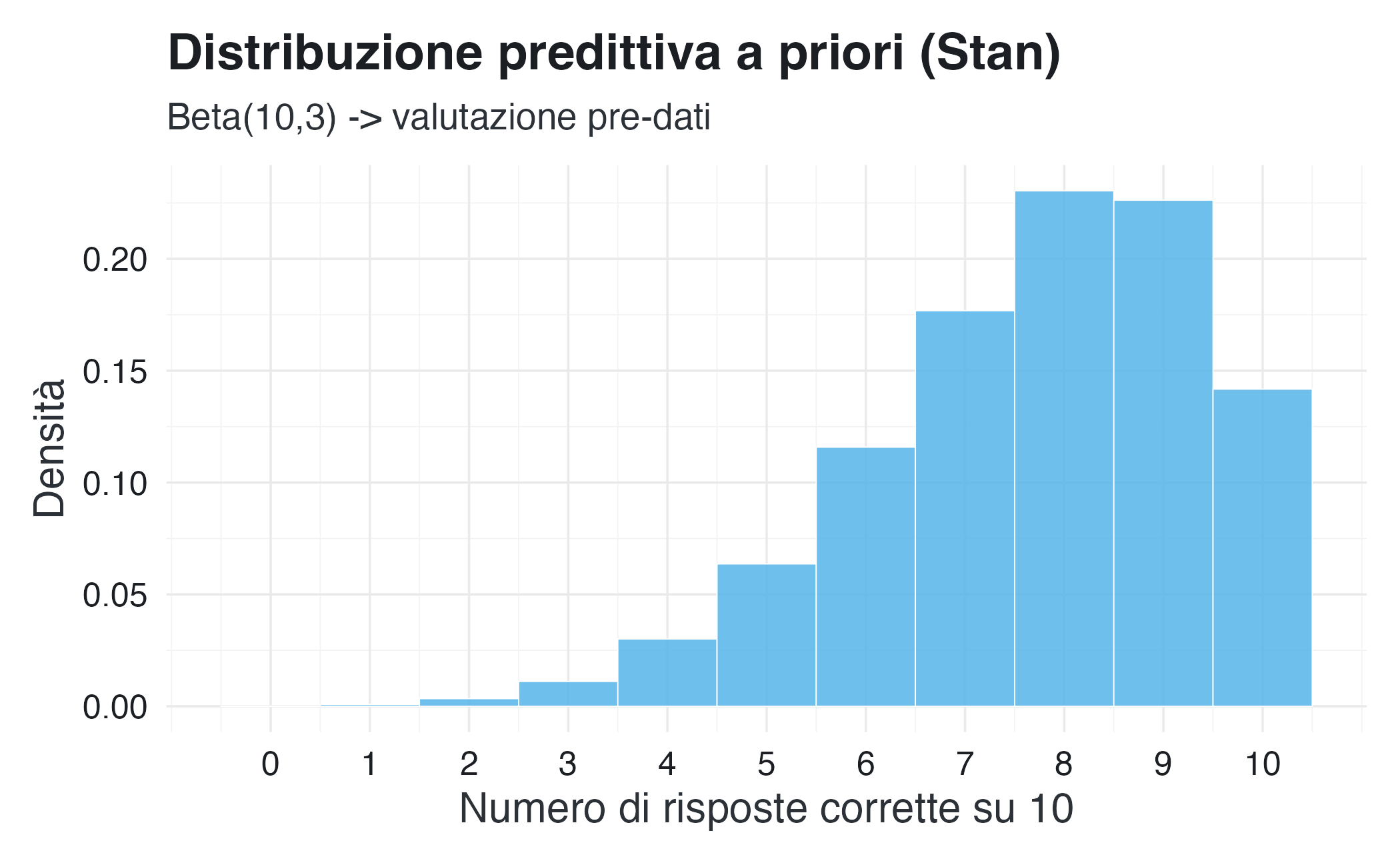 - Trasparenza: l’implementazione diretta in Stan rende esplicite le implicazioni delle nostre scelte a priori.