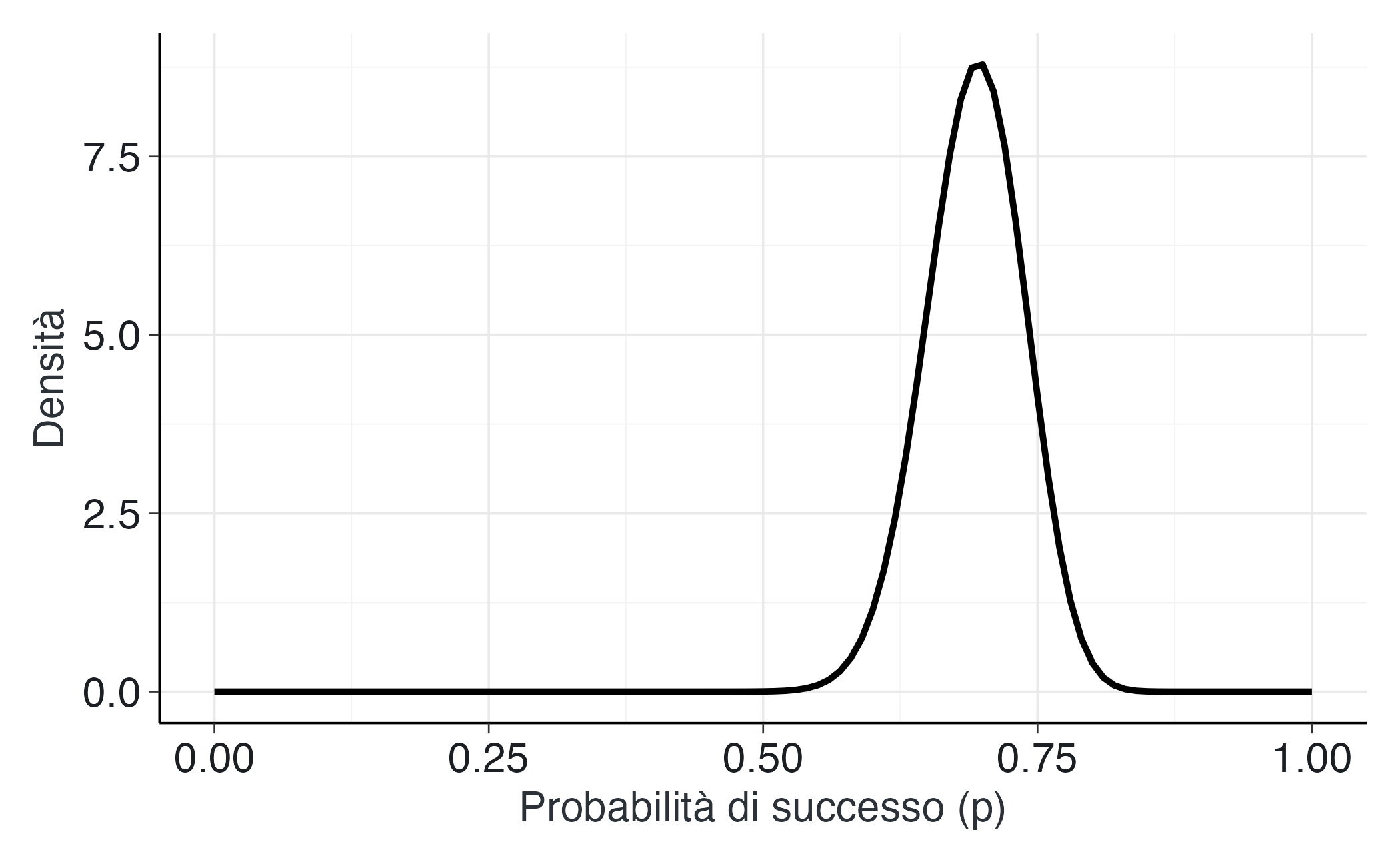 - Rappresenta l’incertezza sulla stima del parametro stesso, che potrebbe assumere valori come 0.65, 0.70, 0.75…
