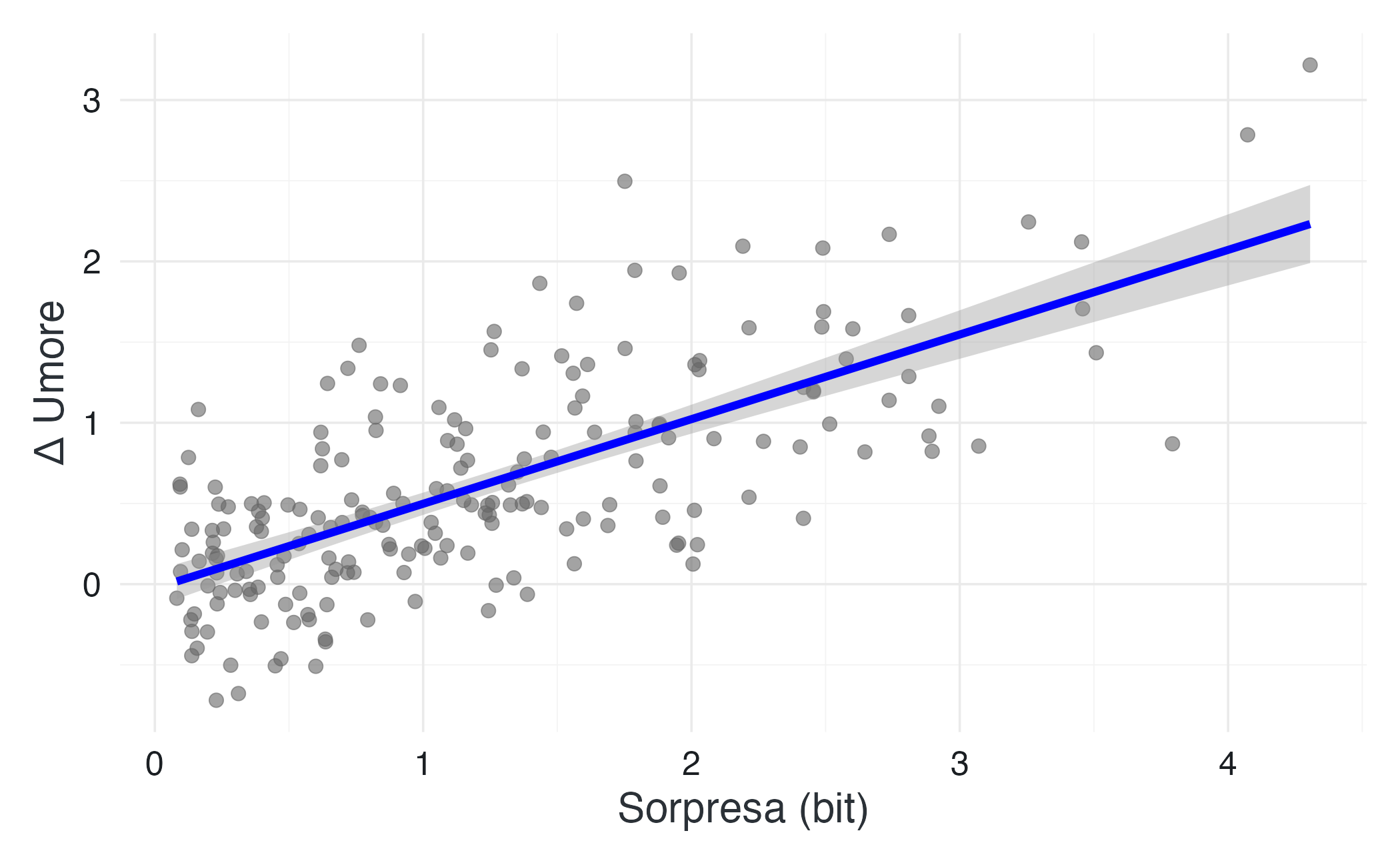 Studi che utilizzano il metodo Ecological Momentary Assessment (EMA) forniscono un’ulteriore prova convergente. Le fluttuazioni dell’umore nella vita quotidiana sono state sistematicamente associate alla probabilità soggettiva che le persone attribuiscono al verificarsi di un evento. Gli eventi ritenuti rari producono oscillazioni emotive più ampie, in linea con il principio informazionale secondo cui una minore probabilità corrisponde a una maggiore sorpresa e, di conseguenza, a un maggiore “carico” di elaborazione e risposta.