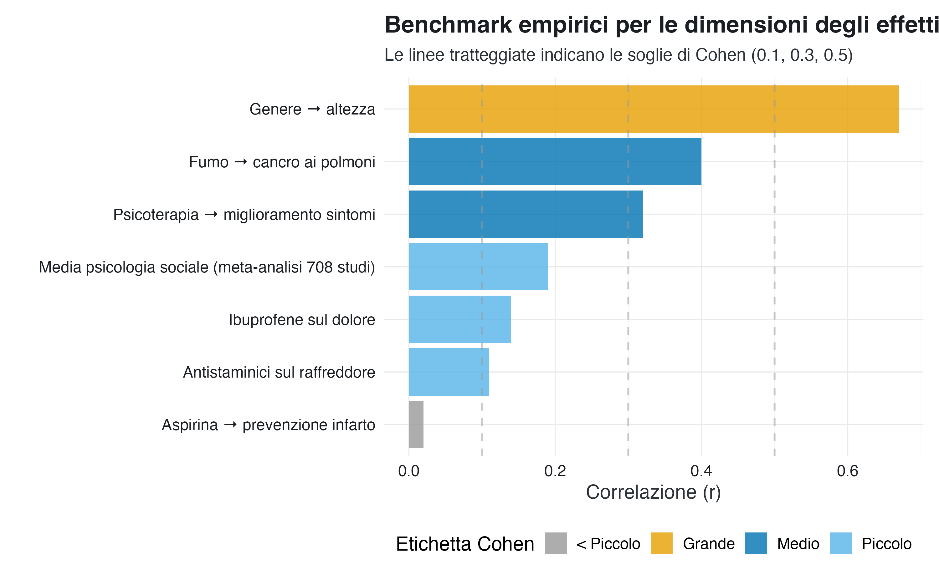 - Visualizzare concretamente cosa significano effetti “piccoli”, “medi” e “grandi”.