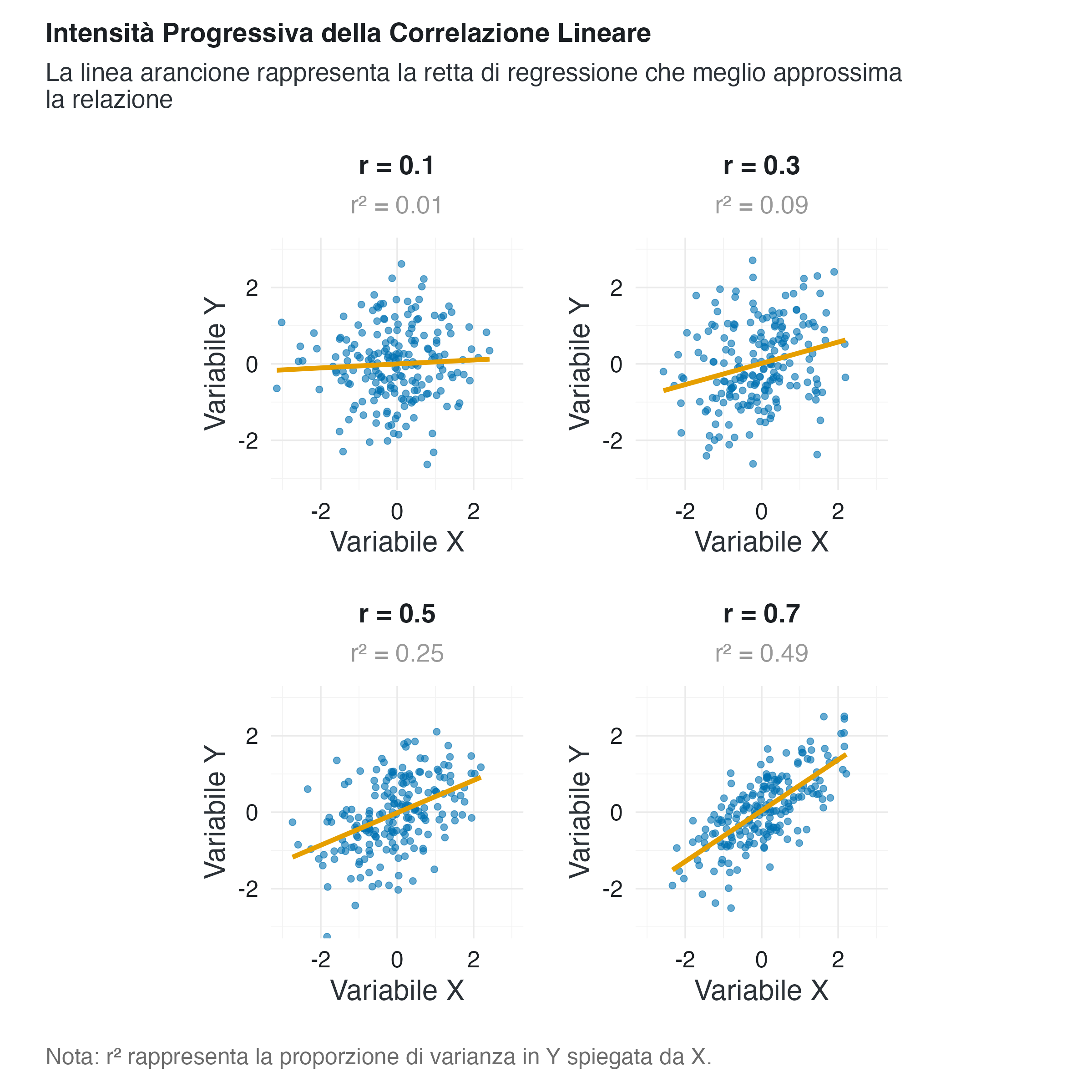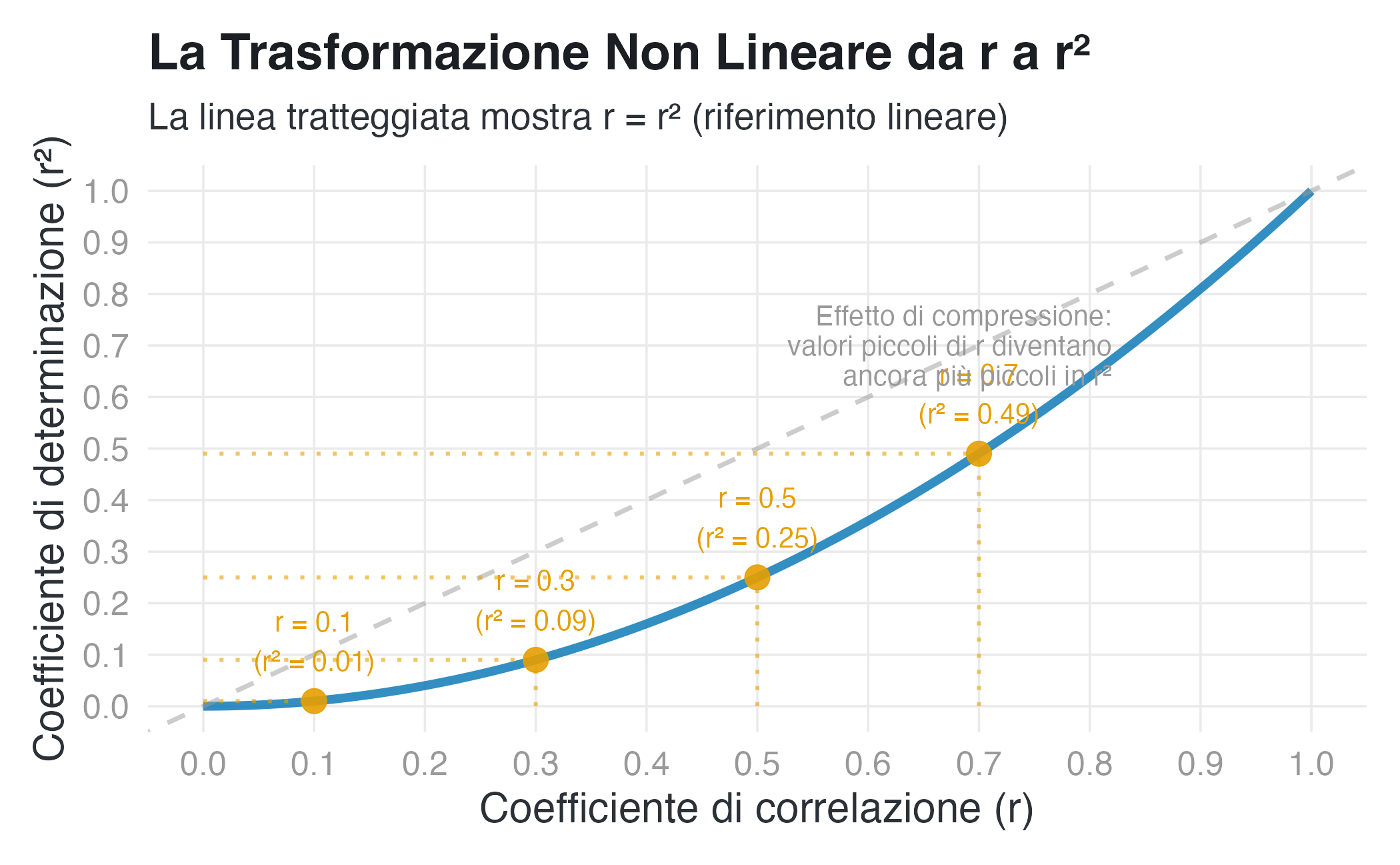 - Comprendere perché \(r^2\) può essere fuorviante rispetto a \(r\).