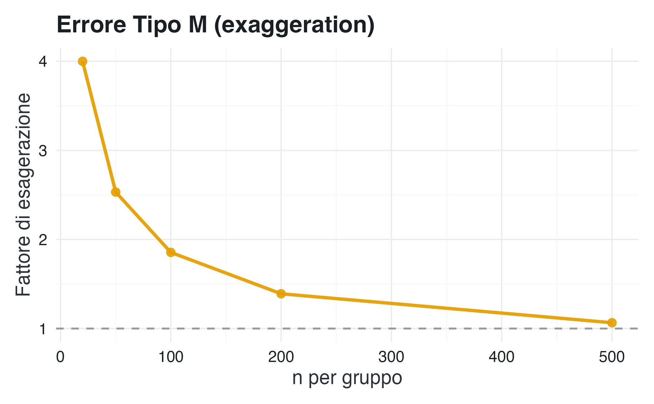 - Errore di tipo M (Magnitude): misura quanto le stime degli effetti significativi tendano a sovrastimare l’effetto reale.