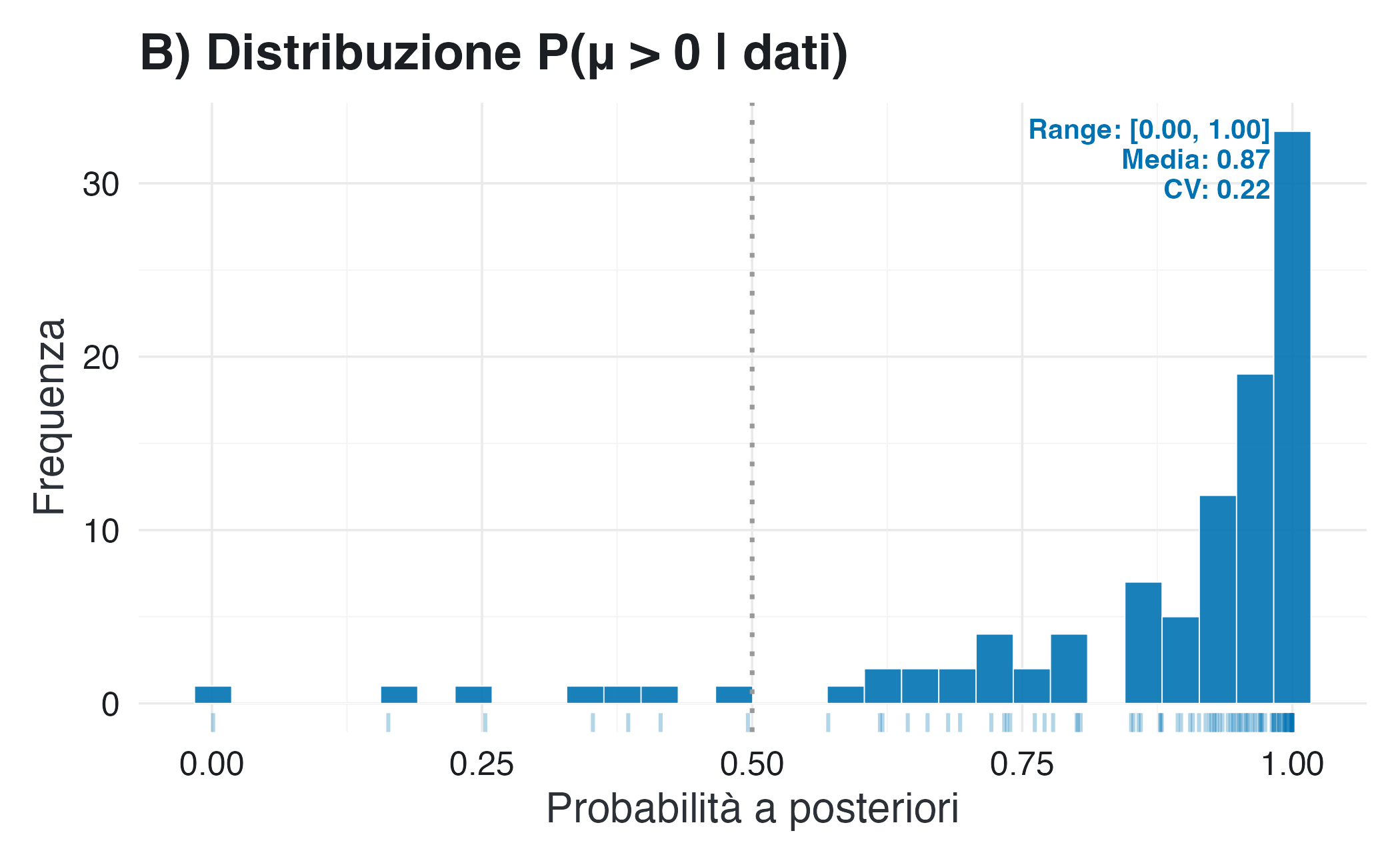 #> Intervallo al 95% per P(μ > 0 | dati):