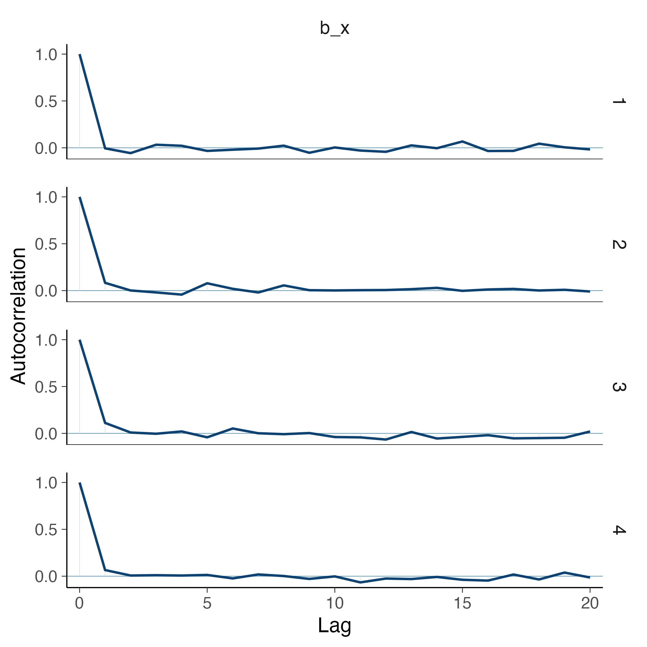 - Trace plots: verificare che le catene mostrino un buon mescolamento (aspetto “a caterpillar”) senza trend o pattern sistematici;