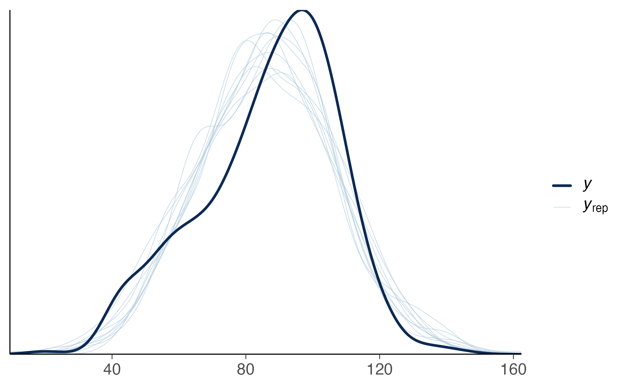 È altrettanto istruttivo chiedersi se le prior che abbiamo scelto, prese di per sé, producano dati plausibili. Con sample_prior = "only" il modello ignora i dati reali e simula direttamente dai prior. Se i punteggi simulati finiscono spesso in regioni irrealistiche — ad esempio QI troppo estremi — conviene riallineare le prior alla conoscenza di dominio.