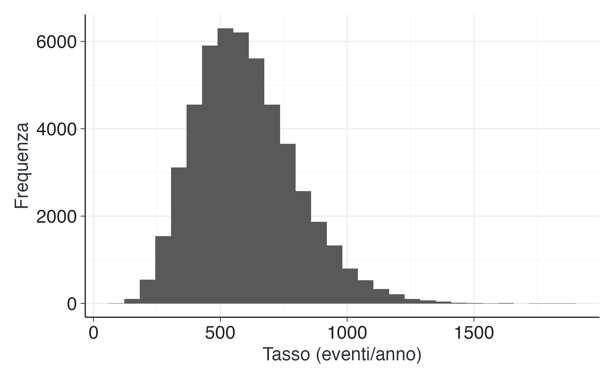 I dati osservati sono un piccolo campione e possono variare da una raccolta all’altra. Un modello probabilistico ci permette di separare il segnale dal rumore, chiarendo quanto dell’andamento osservato sia dovuto al caso e quanto rifletta una regolarità, e consente di quantificare l’incertezza della stima di \(\lambda\) invece di limitarci a una media.