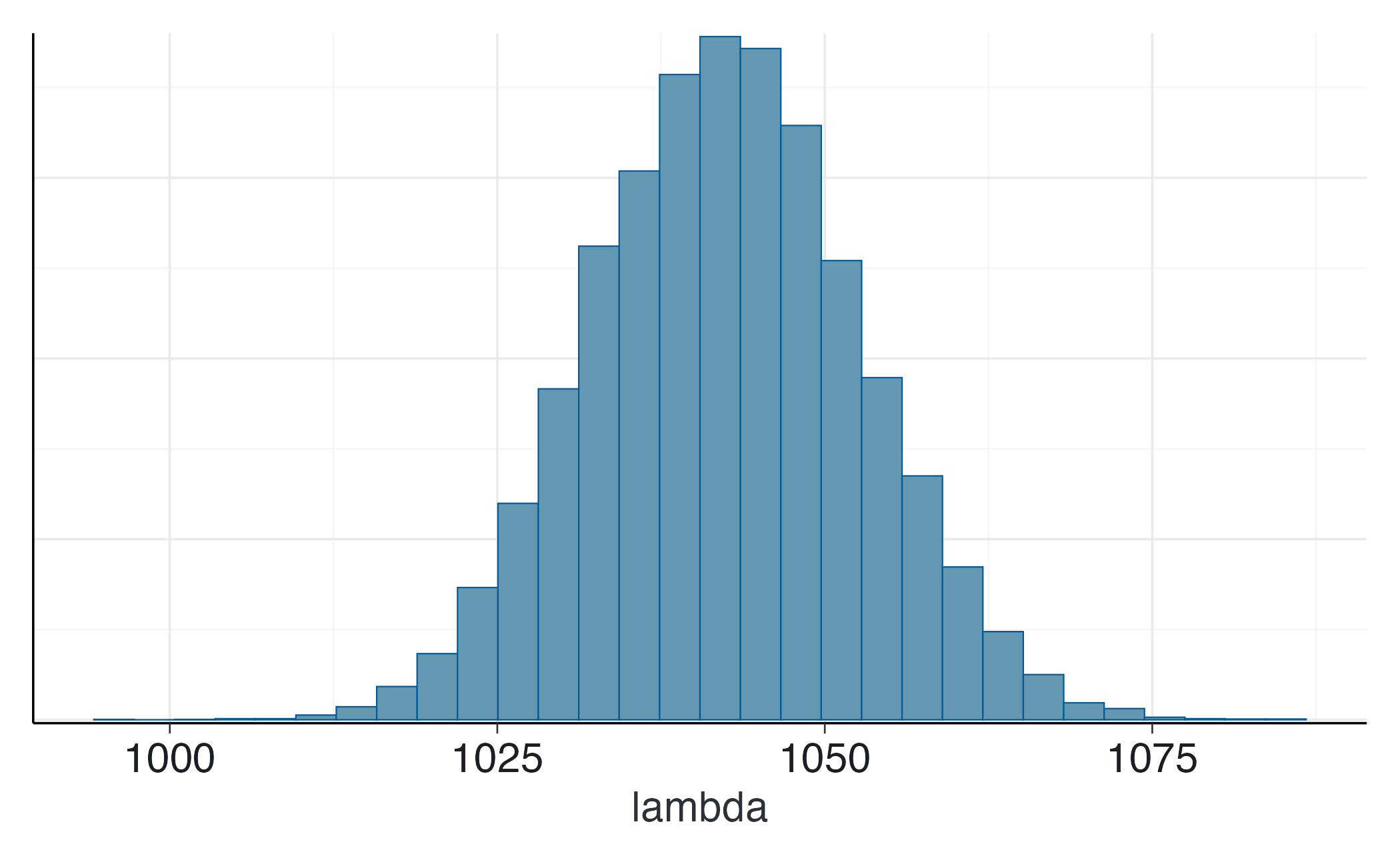 cat("Posterior mean λ:", round(post_mean, 1), "\n")