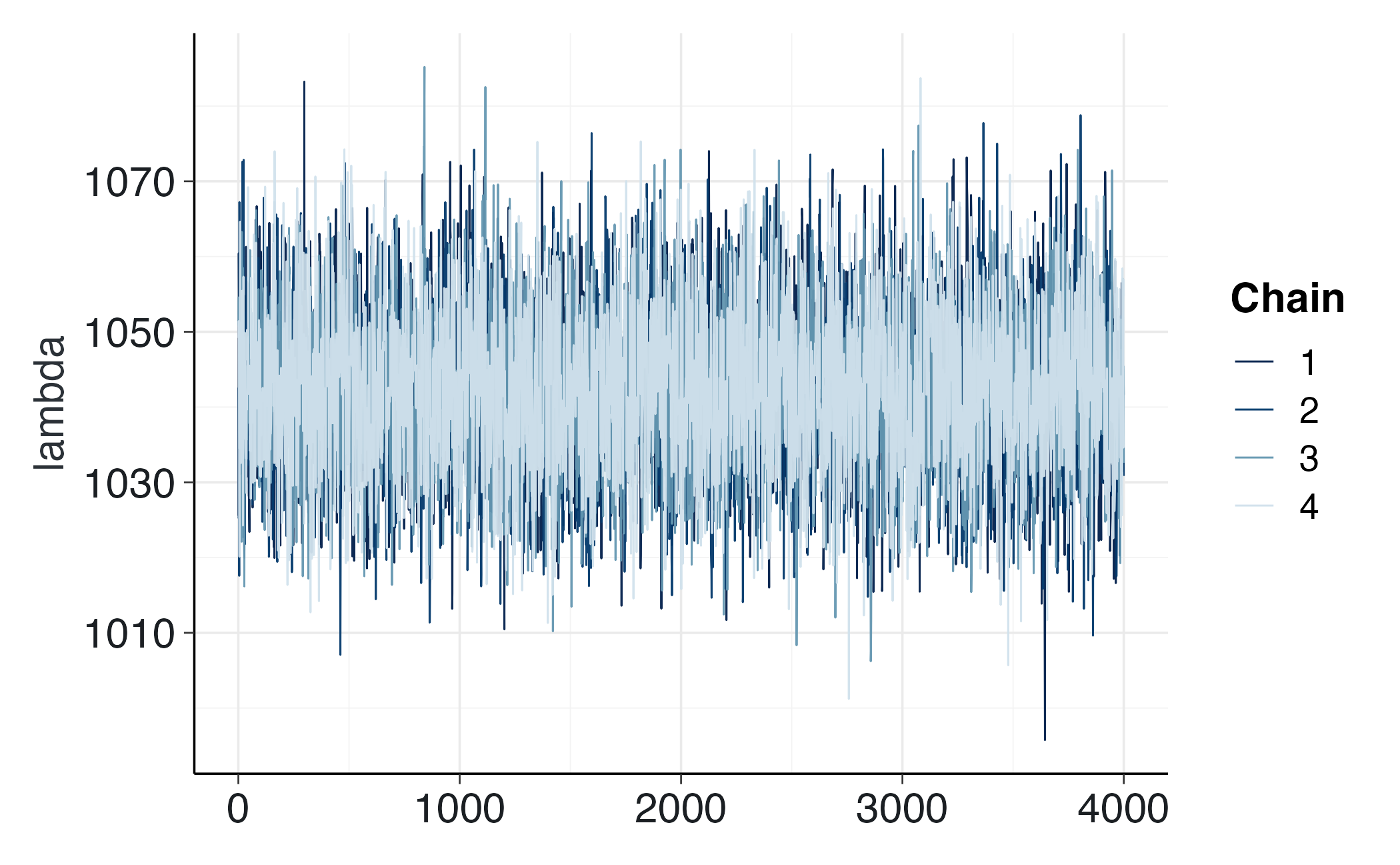 bayesplot::mcmc_trace(fit$draws("lambda")) Derivazione analitica (Gamma–Poisson)
