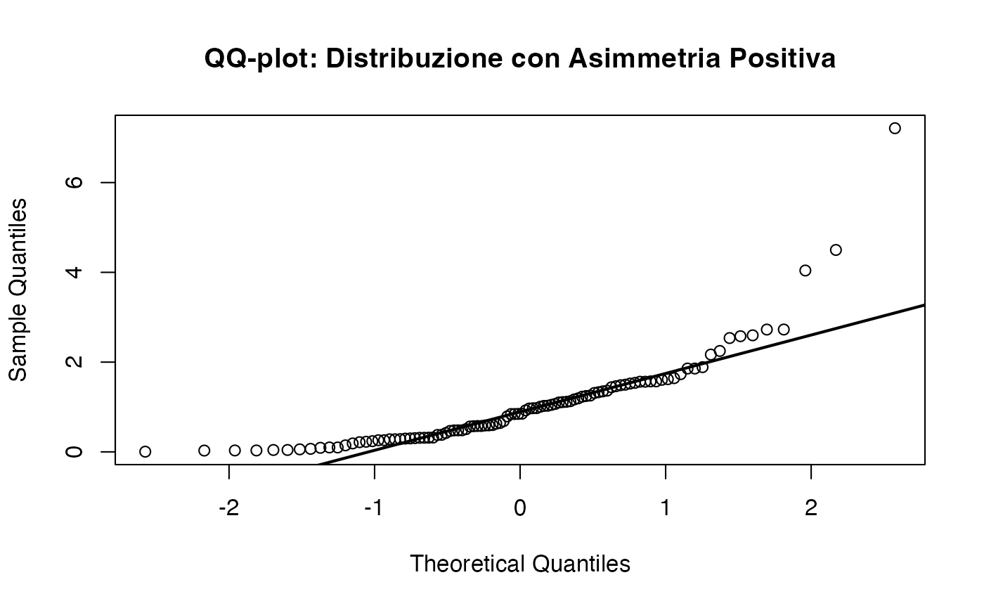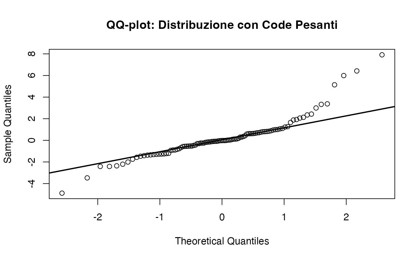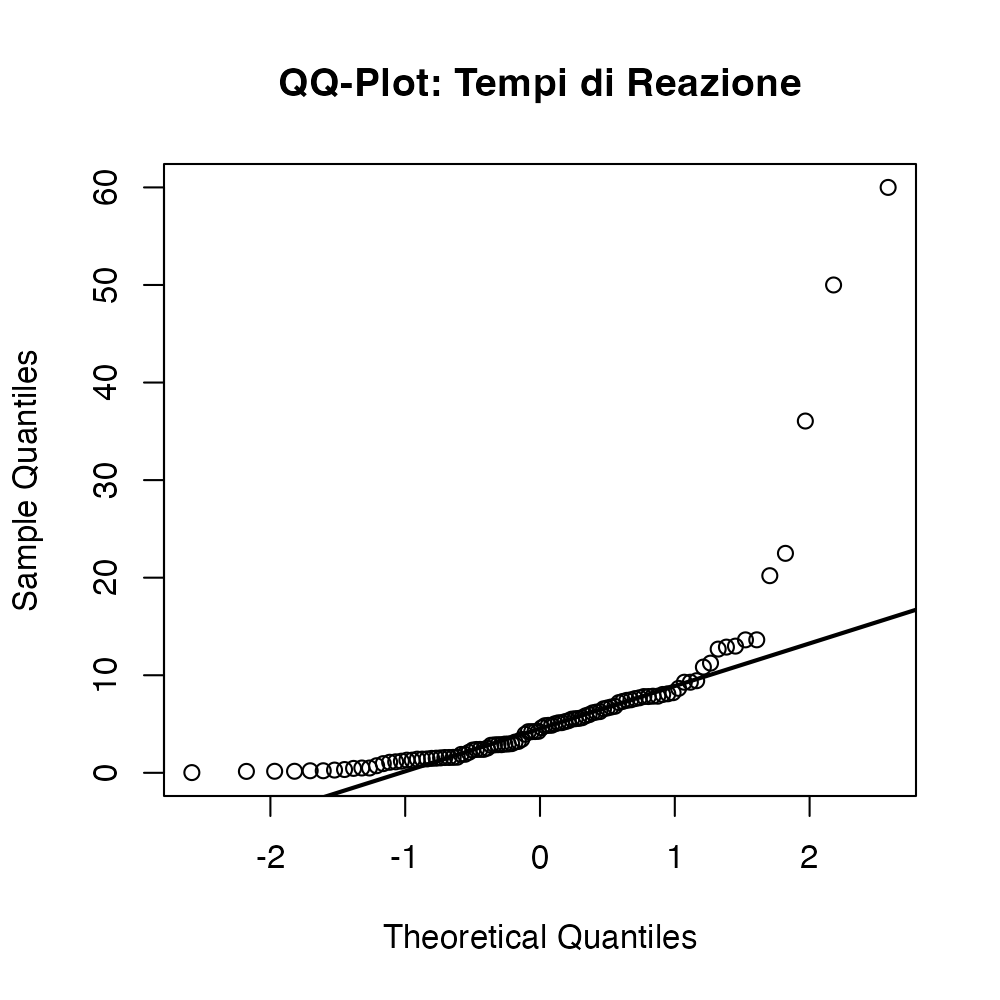 - il QQ-plot (Quantile-Quantile plot), uno strumento visivo particolarmente efficace per rilevare deviazioni dalla normalità.
