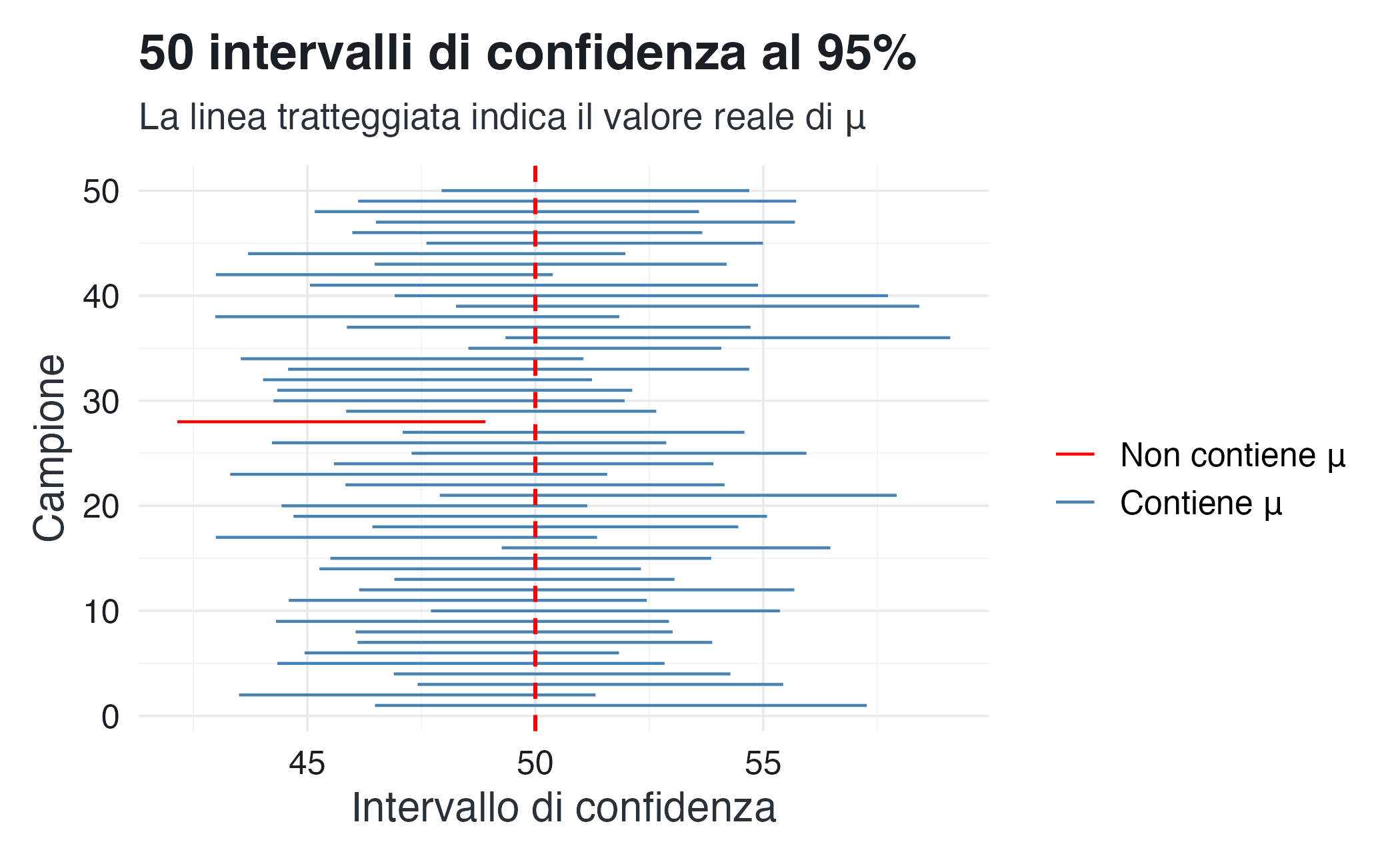 È essenziale sottolineare che il livello di copertura è una proprietà della procedura inferenziale, non del singolo intervallo ottenuto a partire da un campione specifico. Un intervallo di confidenza al 95% è tale perché la procedura che lo genera garantisce una copertura del 95% nel lungo periodo, non perché il singolo intervallo abbia una “probabilità del 95%” di contenere il parametro.