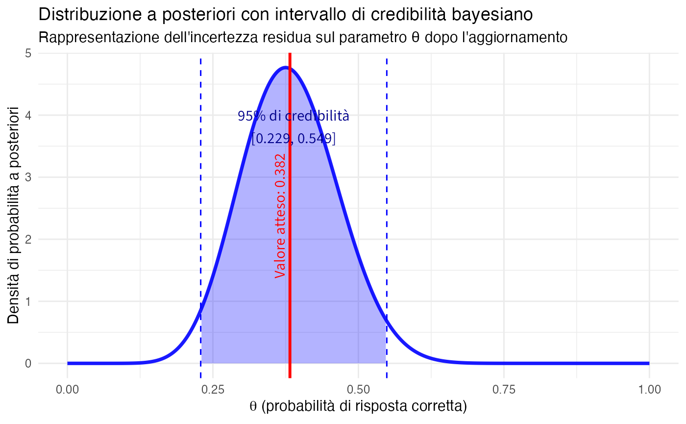 A differenza degli intervalli di confidenza nell’approccio frequentista, gli intervalli di credibilità bayesiani ammettono un’interpretazione probabilistica diretta e intuitiva riguardo al parametro di interesse.