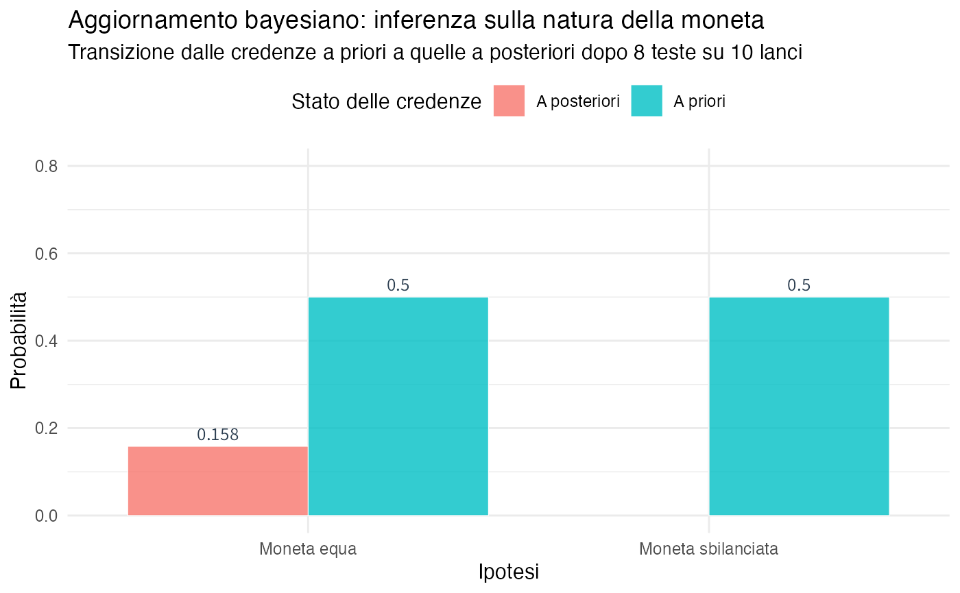 #> dato lo specifico insieme di dati osservati e le nostre credenze iniziali.