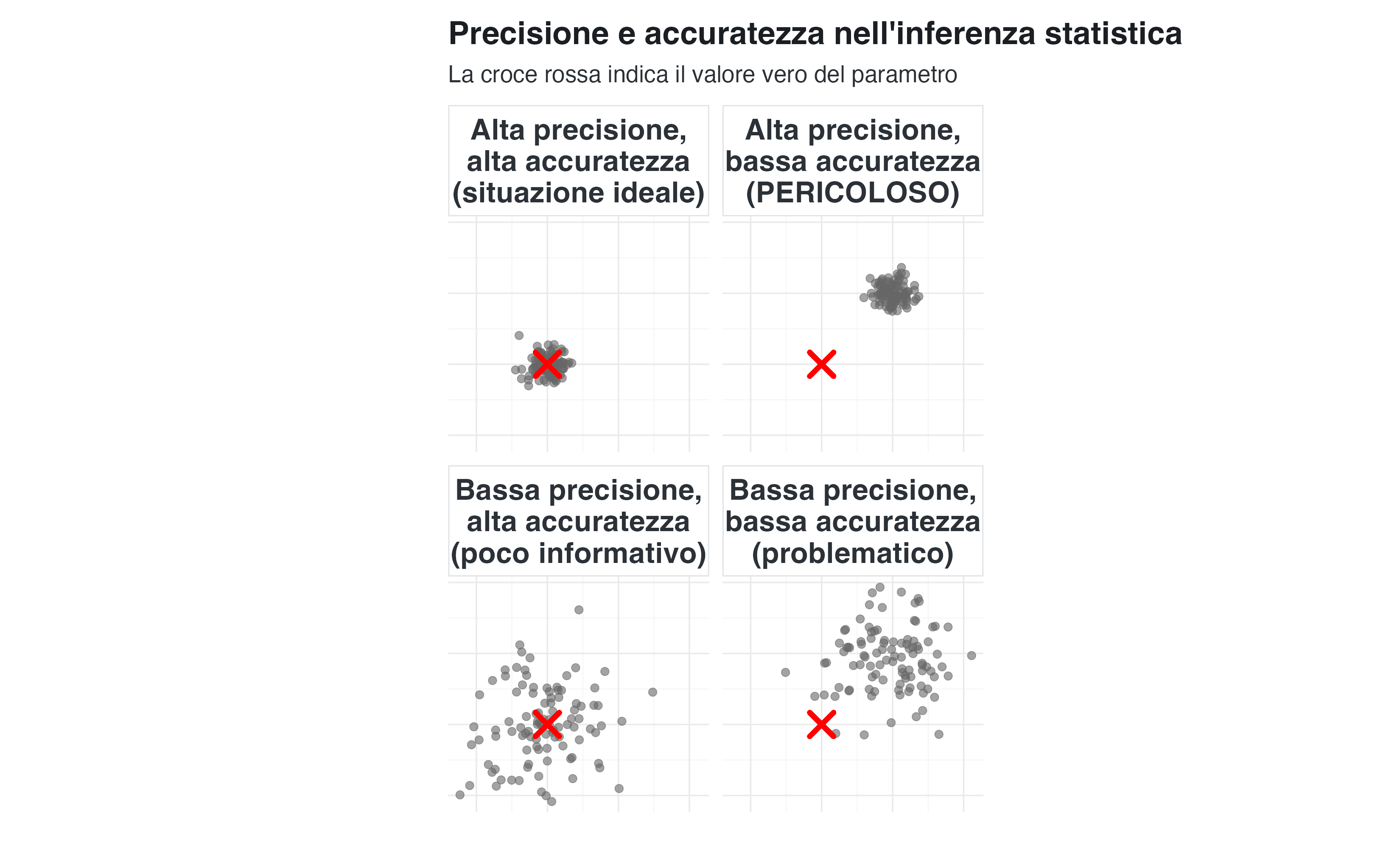 - Alta precisione + bassa accuratezza = pericolo di false certezze