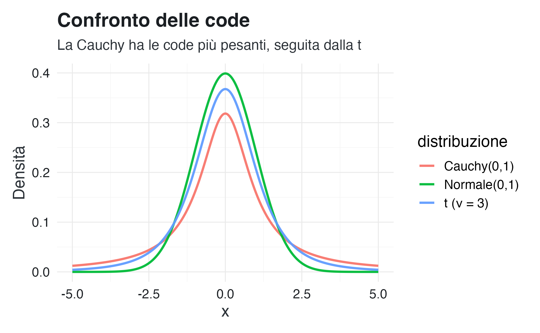 Le stesse distribuzioni, così come altre ancora, servono inoltre a formalizzare e aggiornare le credenze iniziali e finali, assumendo la funzione di prior e posterior per parametri continui. Ad esempio, la beta è usata per probabilità \(p \in (0,1)\), la gamma per tassi \(\lambda > 0\), la normale per medie \(\mu \in \mathbb{R}\), mentre la Cauchy e la \(t\) di Student sono spesso scelte come prior robusti, in grado di gestire code pesanti.